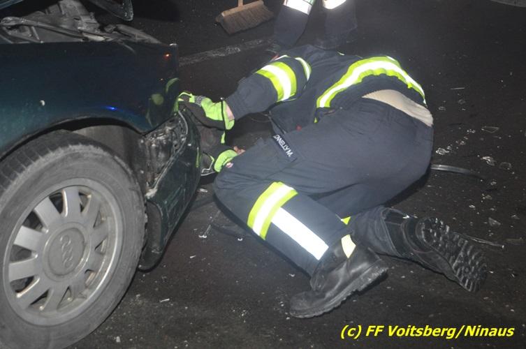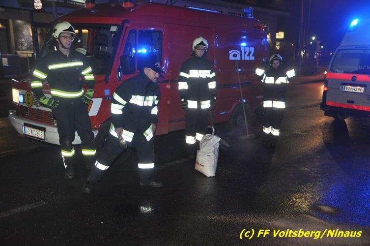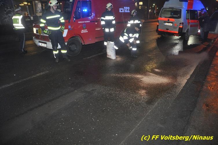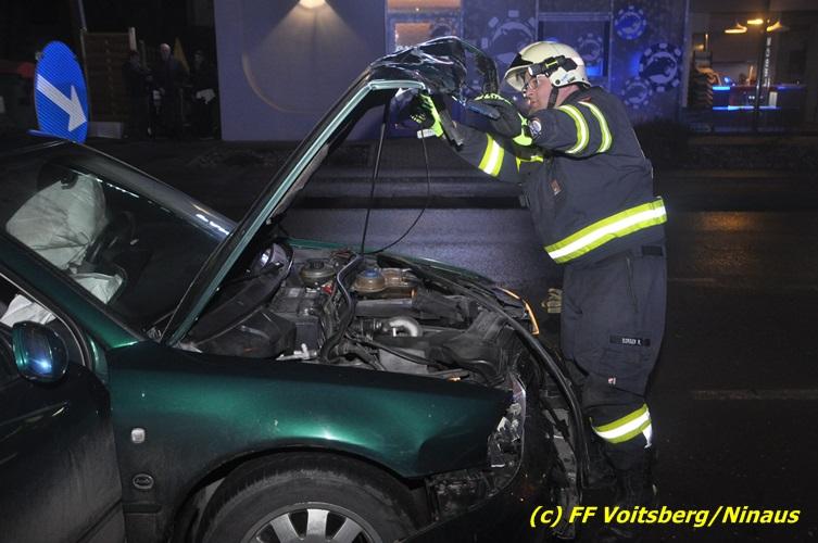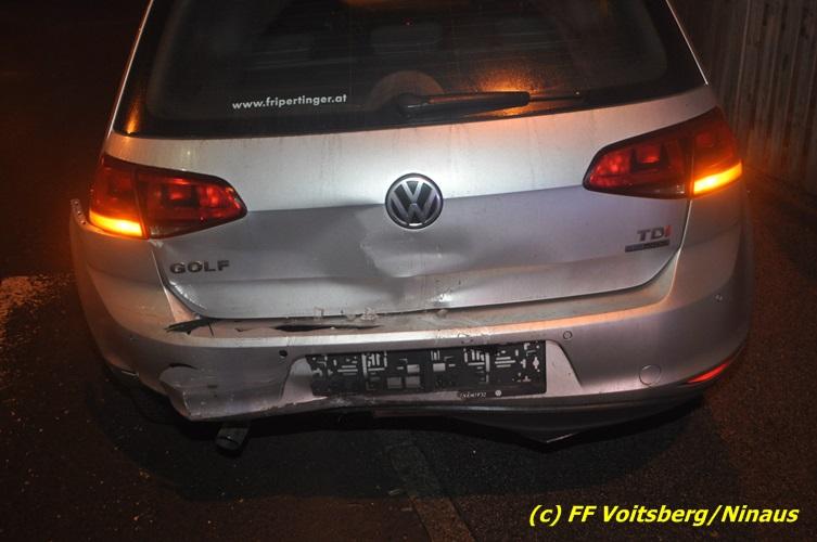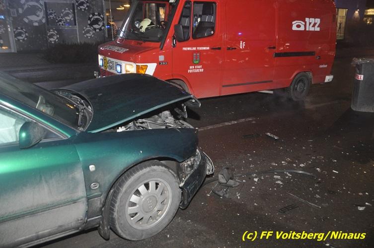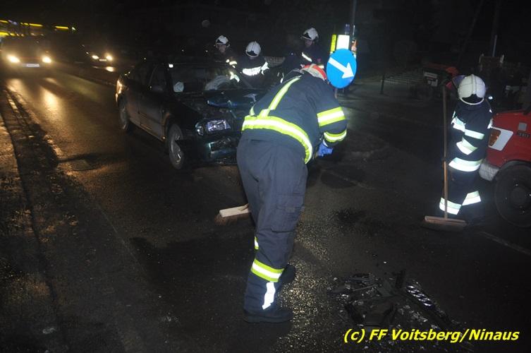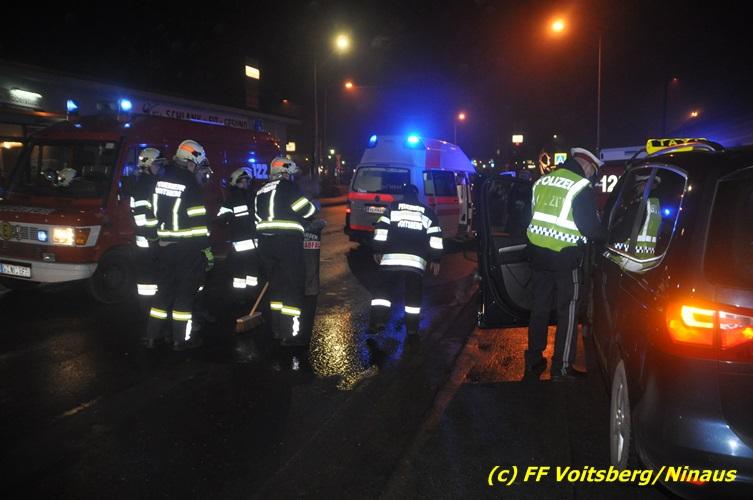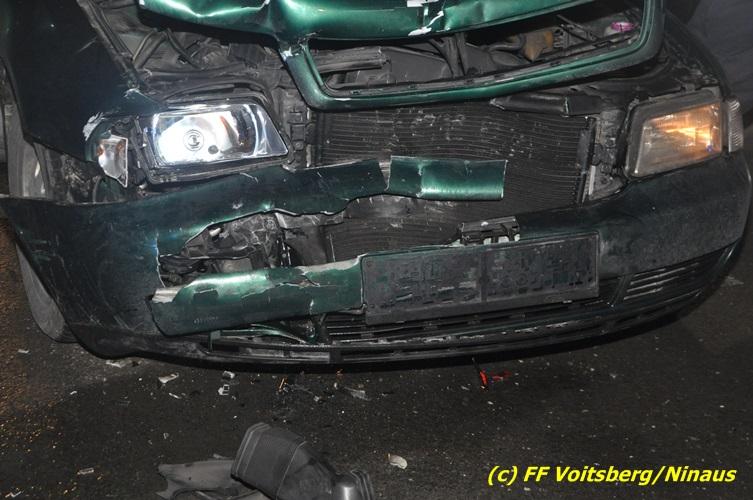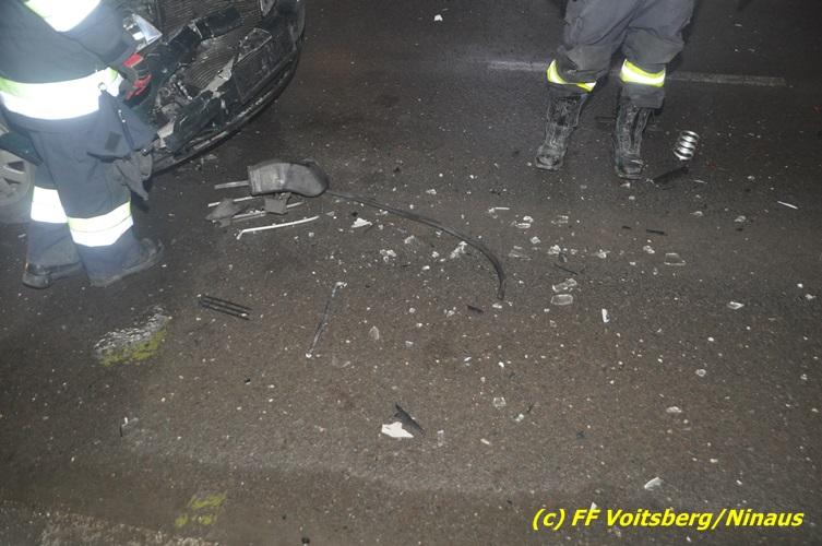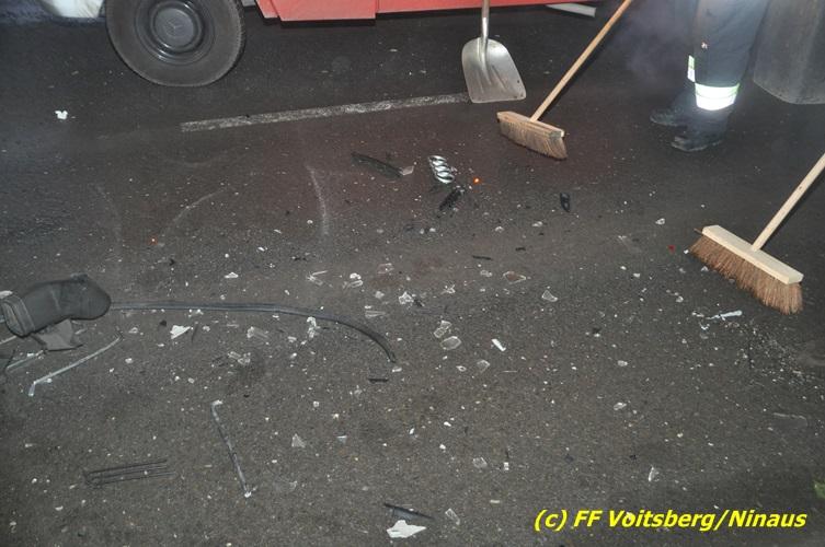 VOITSBERG, am 10.02.2017 Kurz vor dem Kreisverkehr "Blue Sky" in Fahrtrichtung Graz ereignete sich ein Auffahrunfall, wobei der hintere PKW schwer beschädigt wurde und von der Unfallstelle gebracht werden musste, ehe er von einem Autofahrerclub abgeschleppt wurde. Ausgeflossene Betriebsmittel wurden gebunden und entsorgt, sowie herumliegende Wrackteile von der Straße entfernt.