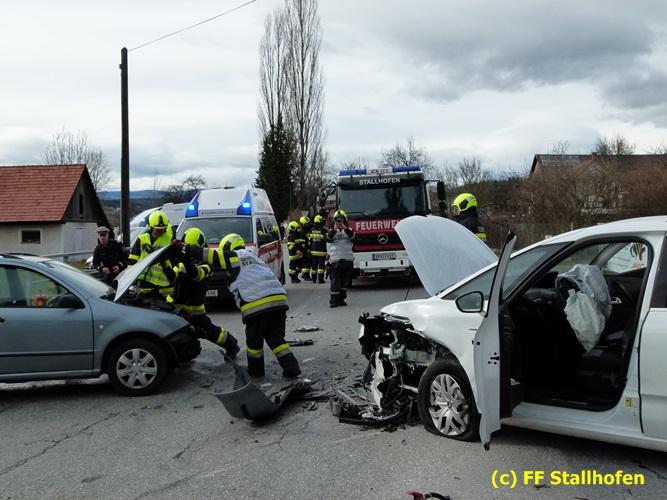 VOITSBERG, am 18.03.2017 Bei einem Zusammenstoß zweier Pkw auf der L315 im Bereich Hausdorf (Gemeinde Stallhofen, Bez. Voitsberg) am Samstag Nachmittag wurden zwei Personen verletzt.
