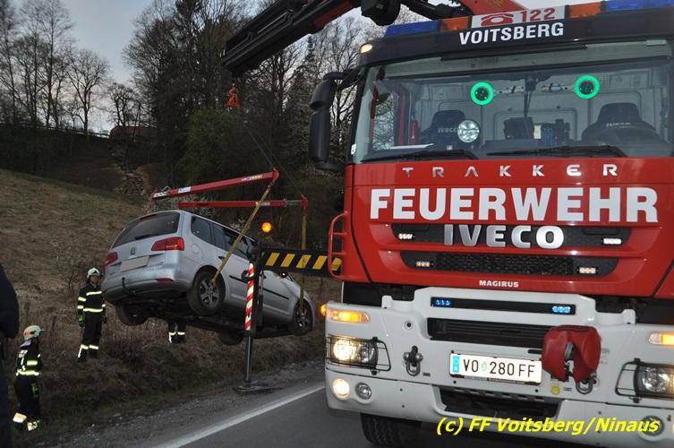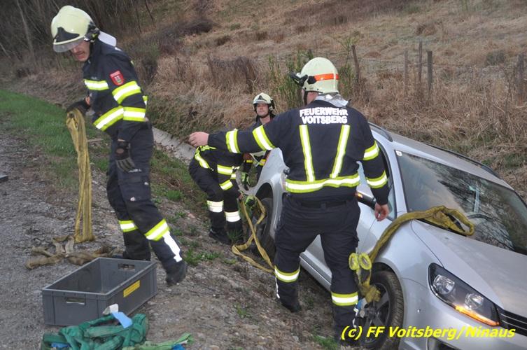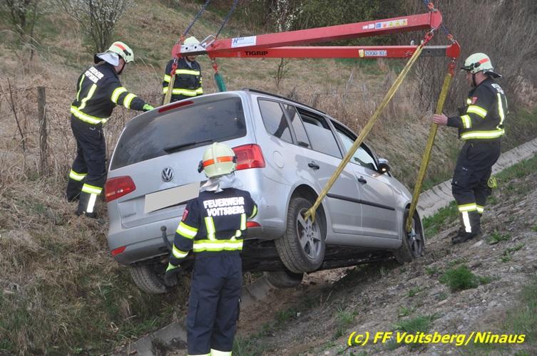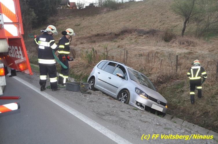 VOITSBERG, am 02.04.2017 Kurz nach dem Umfahrungstunnel Voitsberg in Richtung Köflach geriet ein PKW auf die linke Straßenseite, touchierte eine Straßenbegrenzung, schleuderte eine betonierte Kanalabdeckung ca. 30 m durch die Luft und kam im Straßengraben leicht beschädigt zu stehen. Der Lenker blieb unverletzt. Die Bergung erfolgte nach Absicherung der Unfallstelle mit dem WLF-Kran. Die Polizei Voitsberg regelte während der Bergungsarbeiten den Verkehr.