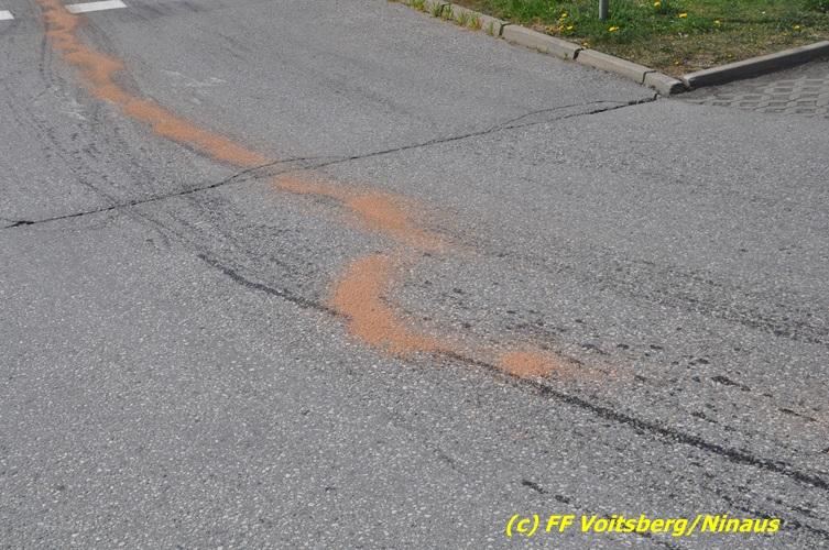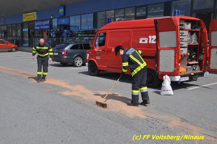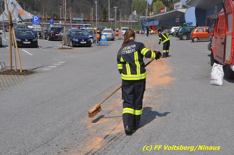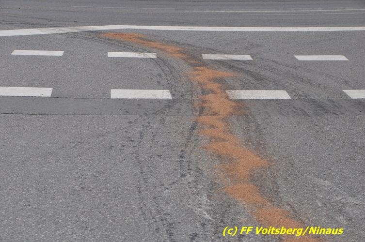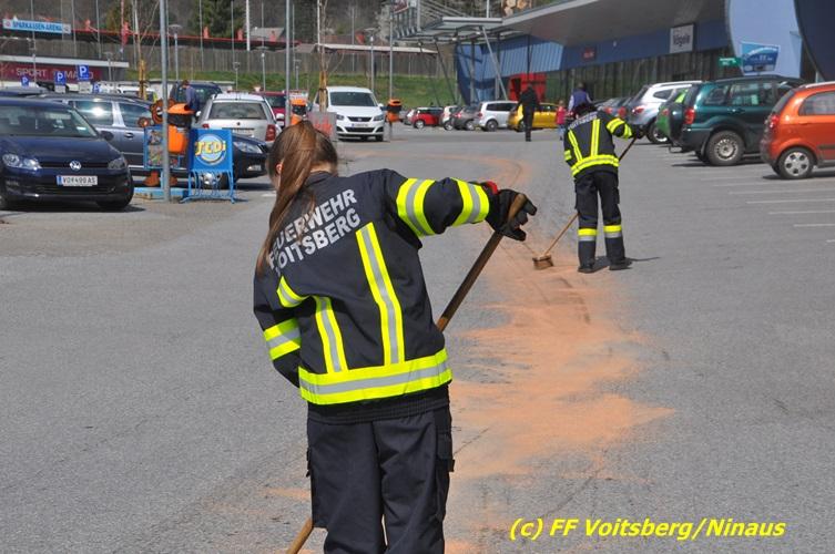 VOITSBERG, am 03.04.2017 Nach einem technischen Gebrechen an einem PKW verlor dieser Betriebsmittel, welche sich auf der Fahrbahn ausbreiteten. Binden mit Bindemittel und fachgerechte Entsorgung.