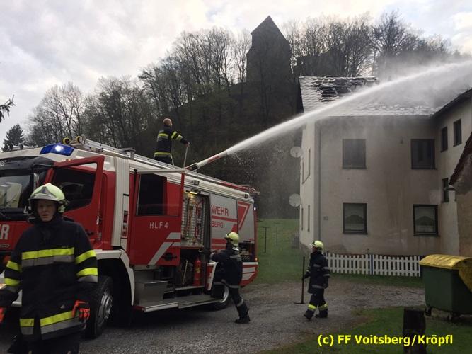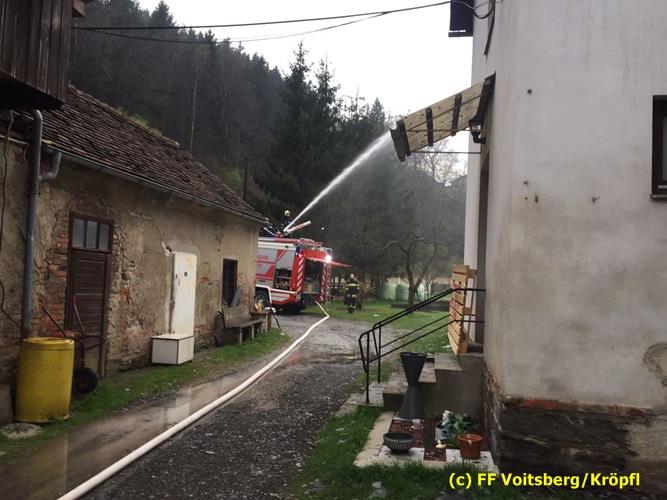 Nachlöscharbeiten nach Brand eines Wohnhauses als Unterstützung der FF Krems