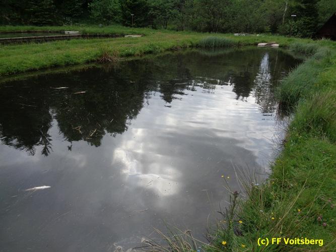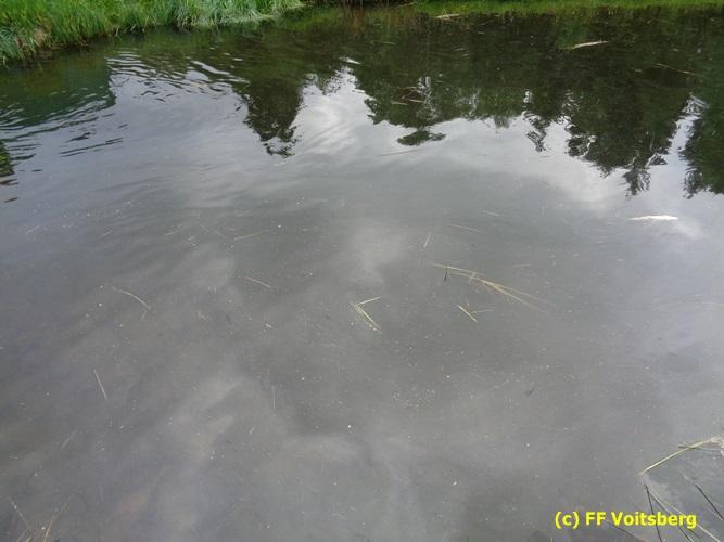 VOITSBERG, am 01.06.2017 Nach einem Verkehrsunfall auf der A2 gelangte Diesel in einen Bach. Der Treibstoff lief in Fischteiche. Errichten von 6 Ölsperren, um eine weitere Gefährdung anschließender Fischteiche und des Fischwassers zu verhindern. Die Ölsperren wurden gesichert und vor Ort gelassen.