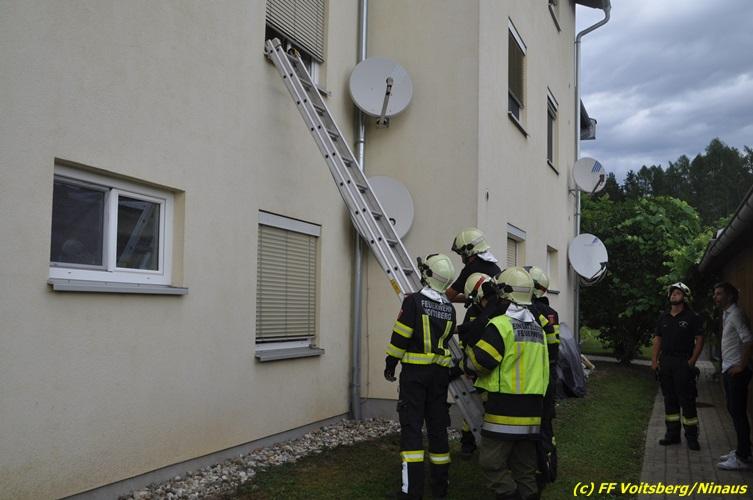 VOITSBERG, am 01.07.2017 Nachdem eine Frau auf Klopf- und Rufzeichen die Wohnungstüre nicht öffnete, wurde zwecks Öffnung ein Schlüsseldienst verständigt. Dieser verständigte, um die Besitzerin vor größeren Schaden zu bewahren, die FF Voitsberg um Einstieg über ein geöffnetes Fenster an. Die ausgerückte Mannschaft brachte eine Schiebeleiter an und ein Kamerad stieg über diese in die Wohnung ein und sperrte die Wohnungstüre auf. Die Wohnungsinhaberin konnte von den anwesenden Verwandten unverletzt in Empfang genommen werden.