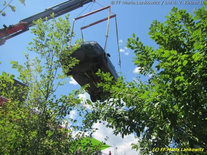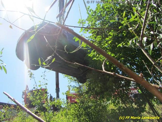 VOITSBERG, am 06.07.2017 In den Mittagsstunden des 06. Juli 2017 wurde die Feuerwehr Maria Lankowitz per Sirenenalarm zu einer Fahrzeugbergung zum Seerestaurant Piberstein alarmiert. Nach dem Eintreffen und Erkunden durch Einsatzleiter HBI Harald Sorger wurde für die Fahrzeugbergung das WLF der Freiwilligen Stadtfeuerwehr Voitsberg nachalarmiert. In der Zwischenzeit wurde das Fahrzeug mit der Seilwinde des KLF-A Maria Lankowitz gesichert und ein 2-facher Brandschutz aufgebaut. Um das Fahrzeug mit dem WLF heben zu können, mussten noch einige Sträucher entfernt werden. Nach der Fahrzeugbergung konnten die Feuerwehren um ca. 14.00 Uhr wieder in ihre Rüsthäuser einrücken und die Einsatzbereitschaft wiederherstellen.