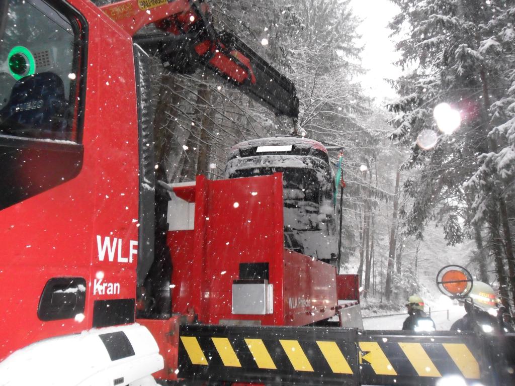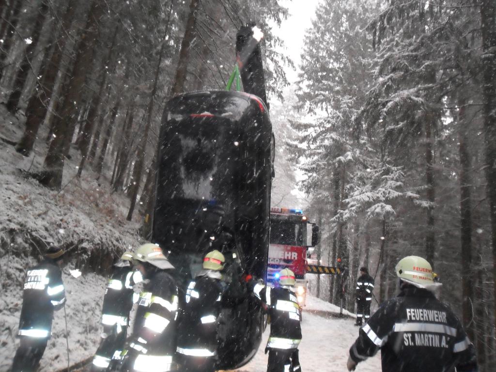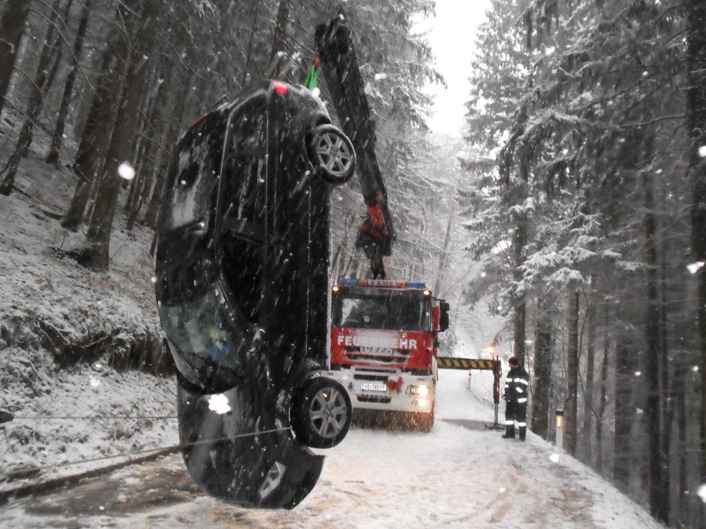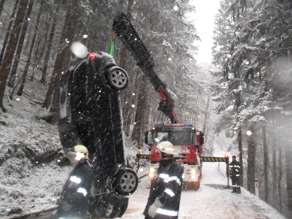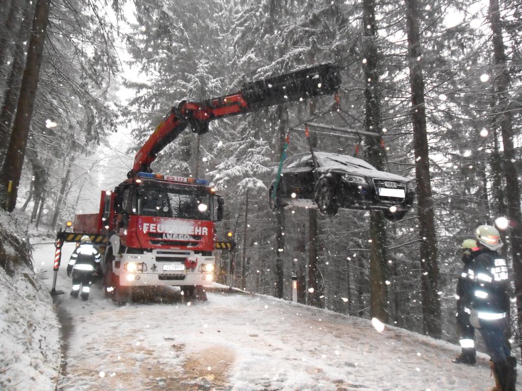 VOITSBERG, am 30.01.2015 Aus ungeklärter Ursache geriet eine Lenkerin mit ihrem PKW rechts von der Straße ab, schlitterte einer Böschung entlang und kam auf der Landesstraße am Dach zu liegen, blieb aber zum Glück unverletzt. Die einsatzleitende Feuerwehr St.Martin verständigte zwecks Bergung das WLF-K Voitsberg an, mit welchem das Fahrzeug geborgen und abtransportiert wurde.