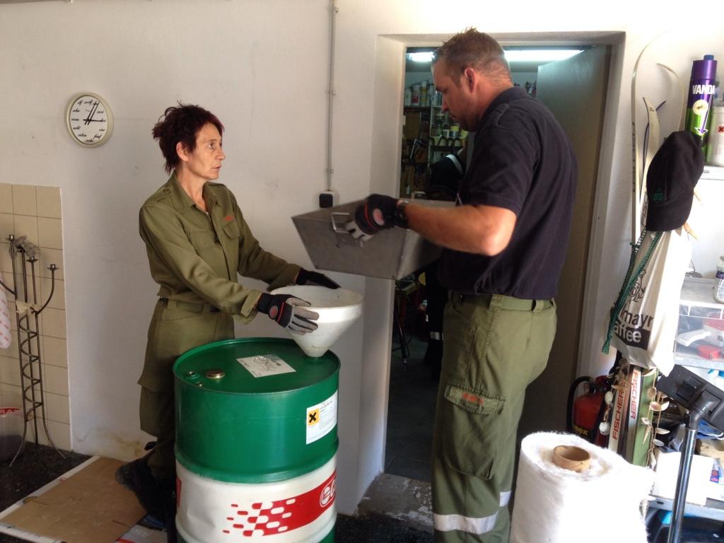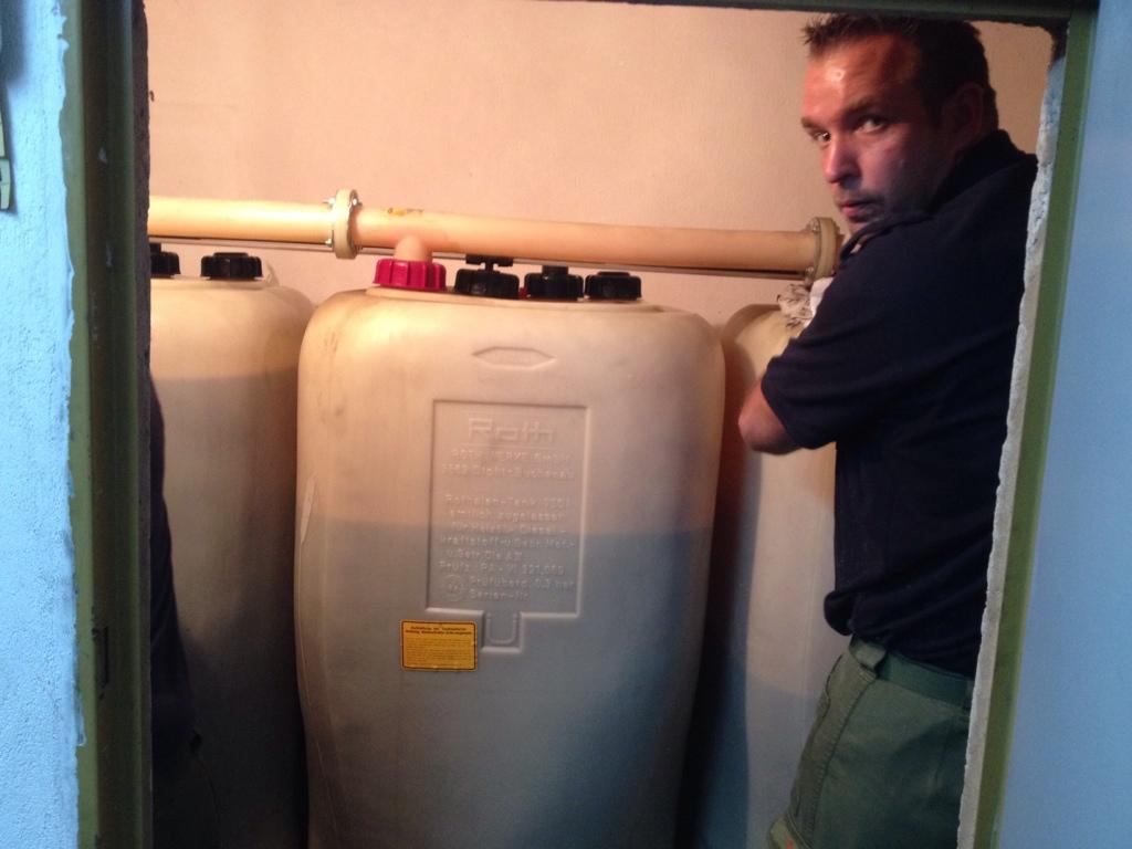 VOITSBERG, am 30.07.2014 Einsatz für das Ölschadensfahrzeug nach Anforderung von EL Köflach. In einem Wohnhaus traten ca. 60 Liter Heizöl aus, welches abgeschöpft und in ein Fass zur Entsorgung gefüllt wurde. Mittels Bindemittel wurde der Boden gesäubert und das getränkte Bindemittel entsorgt.