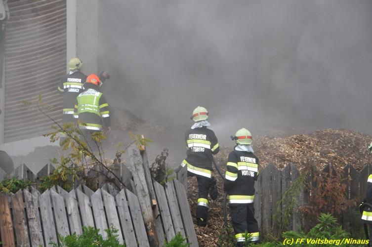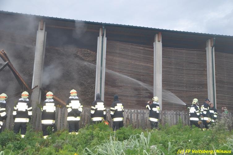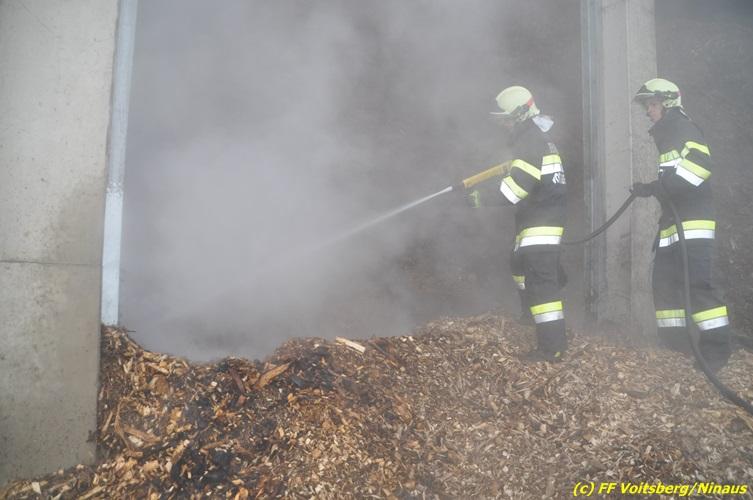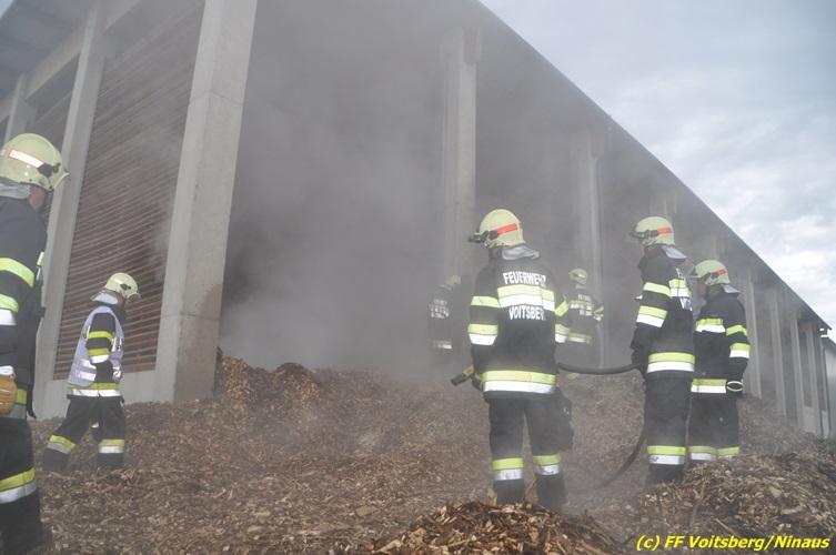 Brand von Hackschnitzeln in Lagerhalle