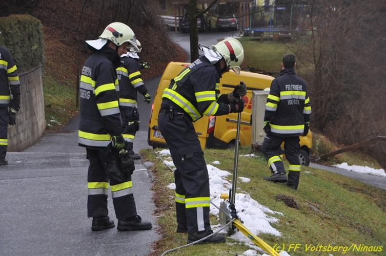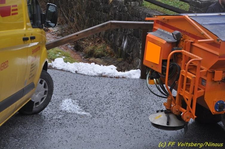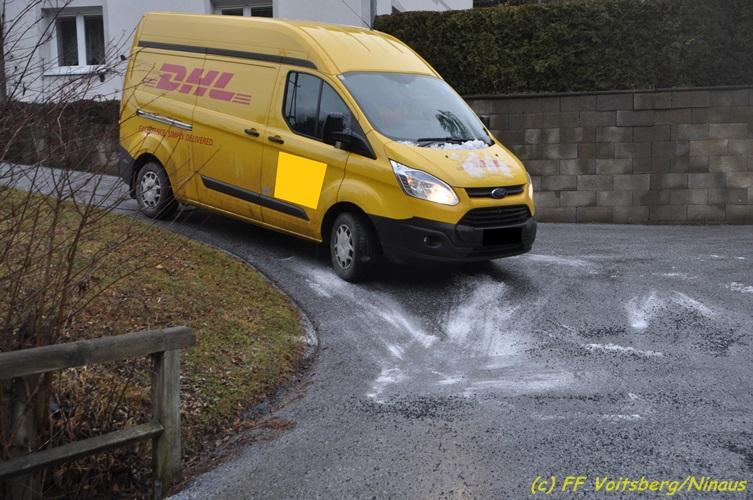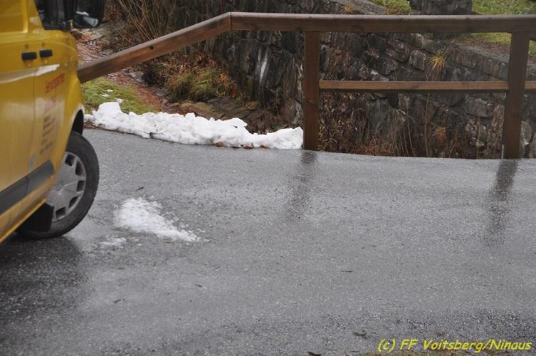 VOITSBERG, am 09.12.2017 Nach Auftreten von Blitzeis konnte ein Kleinbus auf einer Privatstraße nicht mehr weiterfahren. Sichern des Fahrzeuges mit einem Greifzug und Aufbringen von Streusalz. Es entstand kein Sachschaden.