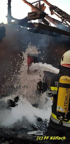 Die FF Voitsberg hatte die Aufgabe, Löschwasser mit dem HLF 4 zum Einsatzort zu befördern. Die Kameraden transportierten dieses 12 Stunden lang von der Wasserbezugsstelle in Gradenberg zum Brandobjekt. Insgesamt wurden fast 200 km zurückgelegt. Die Mannschaft mit dem LKWA blieb einige Zeit im Dorf Graden in Bereitschaft, ehe sie wieder ins Rüsthaus einrücken konnte.