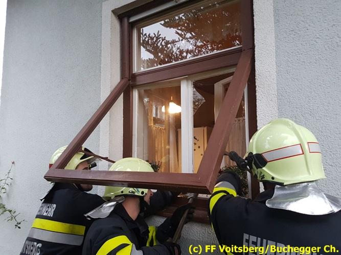 VOITSBERG, am 03.01.2018 Nachdem sich eine Frau in der Jungferngasse in Voitsberg am Mittwochnachmittag durch Rufzeichen aufmerksam machte, dass sie im Wohnhaus gestürzt ist und nicht mehr aufstehen kann, wurde zwecks Rettung der verunfallten Frau seitens des Roten Kreuzes die FF Voitsberg als Unterstützung alarmiert. Ein Kamerad stieg in Anwesenheit der Polizei über das Küchenfenster ein und öffnete zwecks Versorgung der Verletzten die Eingangstüre, bei welcher innen der Schlüssel steckte. Die Kameraden der FF Voitsberg halfen sodann beim Abtransport der Verletzten zum Rettungsfahrzeug. Der Grad der Verletzung wurde erst im LKH festgestellt.