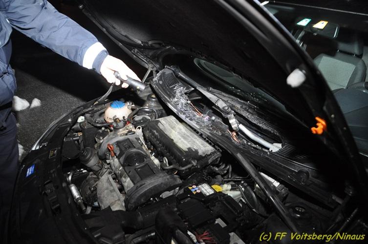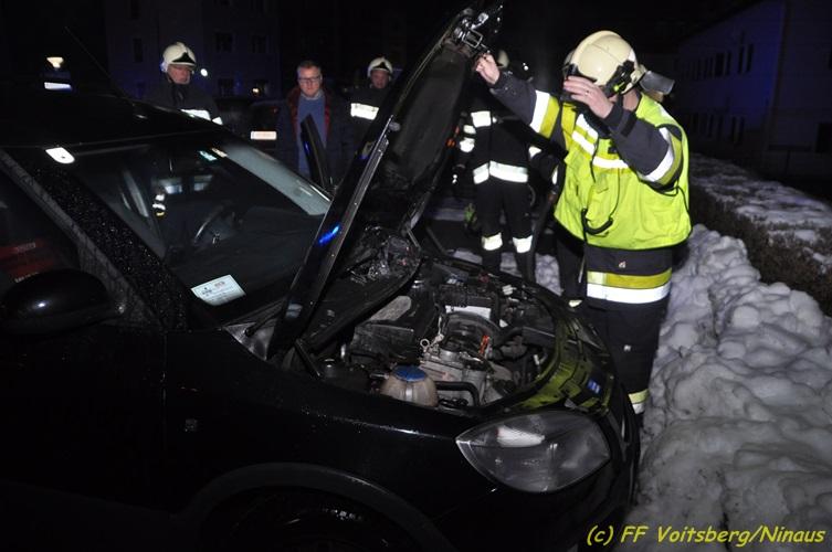 VOITSBERG, am 08.02.2018 Vermutlich nach einem Maderbiss entstand im Motorraum eines PKW am Donnerstag, dem 8. Februar kurz vor 6 Uhr ein Kurzschluss. Die Fahrzeugbesitzerin bemerkte dies während der Fahrt und parkte das Fahrzeug in der Arnsteinstrasse in Voitsberg. Eine vorbeikommende Passantin bemerkte austretenden Rauch und verständigte die Feuerwehr Voitsberg über Notruf. Es wurde ein Brandschutz aufgebaut, die Motorhaube geöffnet und die Batterie abgeklemmt. Die ebenfalls mit alarmierte Feuerwehr Krems war am Einsatzort als Reserve anwesend. Verletzt wurde niemand. Eingesetzt waren insgesamt 17 Einsatzkräfte der Feuerwehren Voitsberg und Krems, sowie zwei Polizeibeamte. Einsatzleiter: OBI Ing. Bernd Unger Text und Fotos: Walter Ninaus, FF Voitsberg