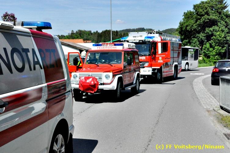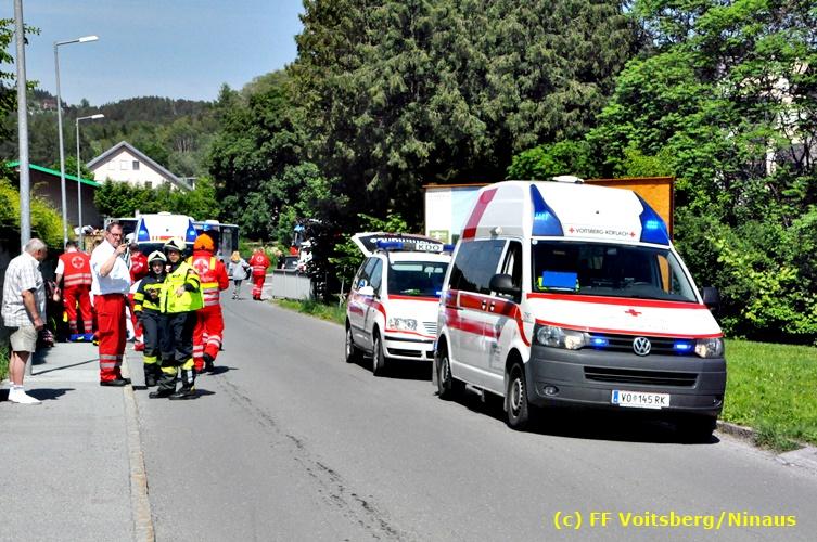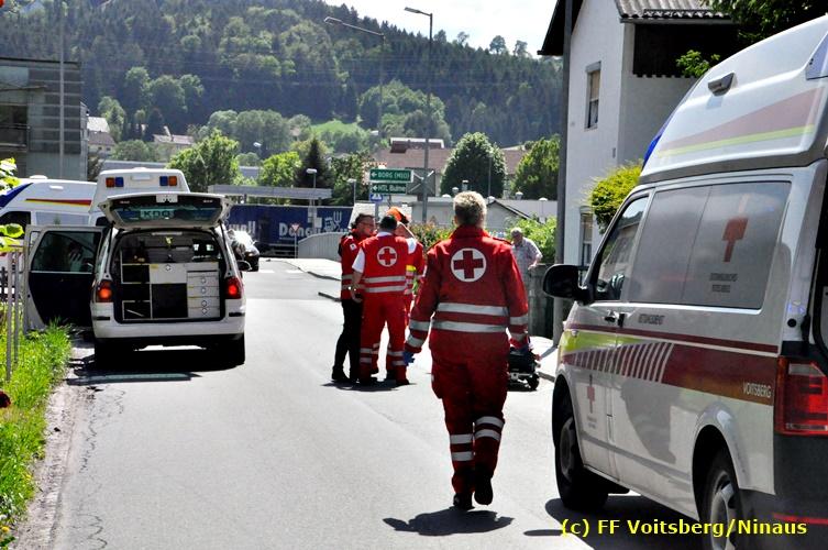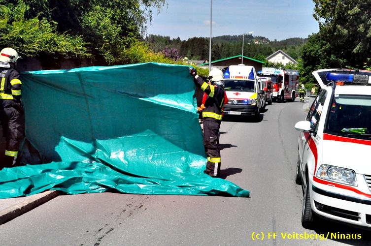 VOITSBERG, am 07.05.2018 Am Montag, dem 7. Mai 2018 um ca. 14:30 Uhr ereignete sich in der Franz-Jonas-Straße in der Nähe des Bundesschulzentrums ein folgenschwerer Verkehrsunfall. Ein Mopedfahrer kam aus unbekannten Gründen von der Straße ab und erfasste eine am Gehsteig gehende Passantin. Beide Personen wurden unbestimmten Grades verletzt. Da es in der Erstmeldung um eine Personengruppe handelte, wurde auch die FF Voitsberg mitalarmiert und sicherte die Unfallstelle ab, baute einen Sichtschutz auf, richtete eine Verkehrsumleitung ein und entfernte herumliegendes, gebrauchtes Verbandsmaterial von der Fahrbahn. Beide Verletzte wurden nach der Erstversorgung durch das Rote Kreuz Voitsberg in Spitäler eingeliefert. Die Polizei führte die Erhebungen durch.