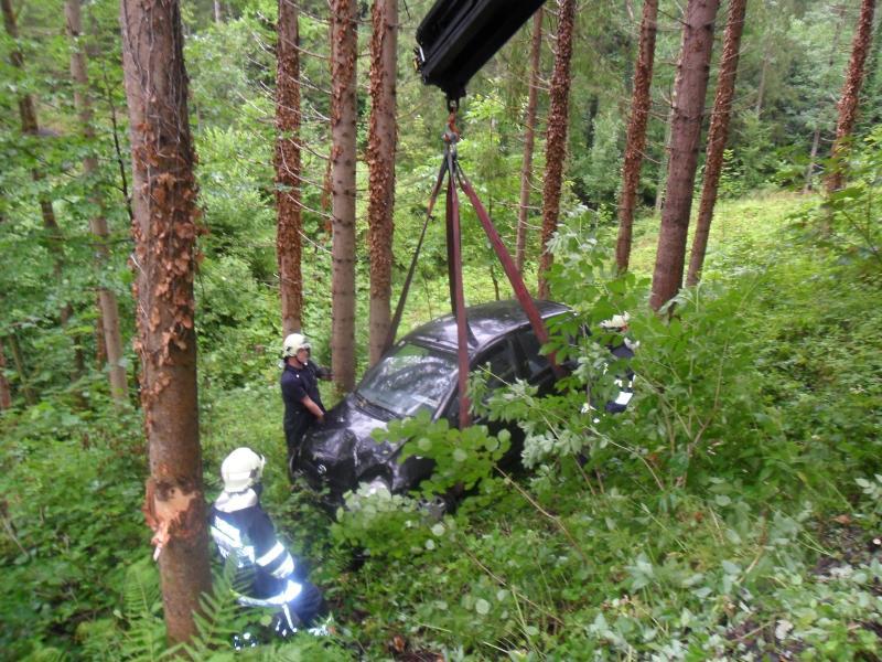 Fahrzeugbergung mit dem WLF-Kran über Anforderung der FF Afling