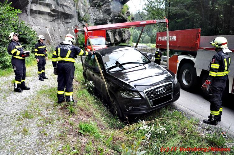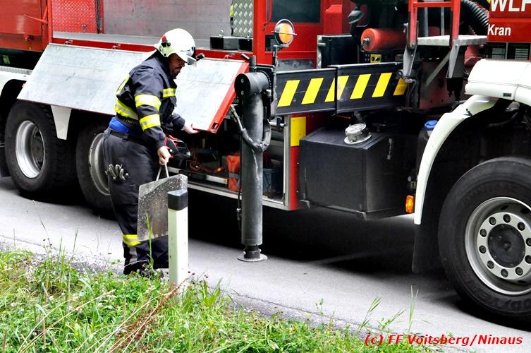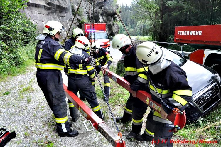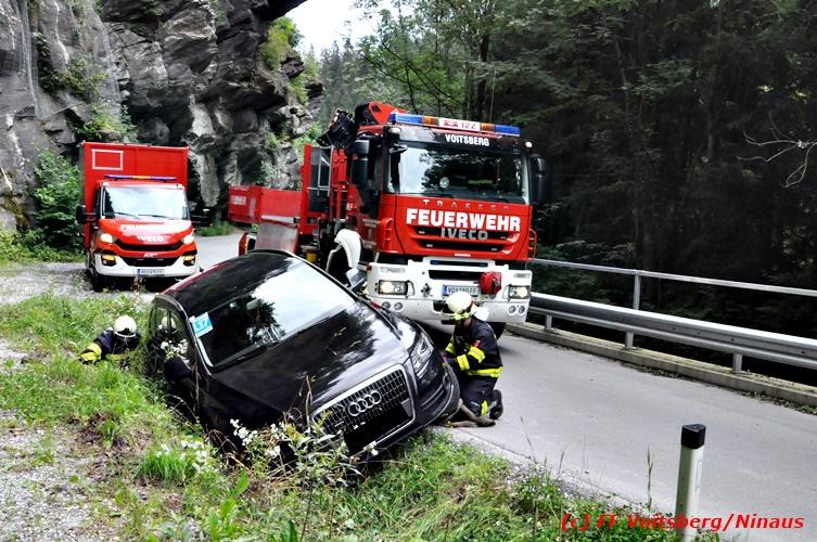 VOITSBERG, am 11.07.2018 Kurz nach Mittag am Mittwoch, dem 11. Juli 2018 geriet eine Lenkerin mit ihrem PKW rechts von der Strasse ab und rutschte in einen Straßengraben. Da Gefahr eines Ölaustrittes bestand, wurde die FF St. Martin a. W. alarmiert. Zwecks Bergung wurde das WLF-Kran der FF Voitsberg nachalarmiert. Unterdessen sicherte die FF St. Martin die Unfallstelle ab und regelte den Verkehr. Das Fahrzeug wurde unbeschädigt geborgen und setzte Fahrt auf eigener Achse fort. Schmiermittel sind keine ausgetreten und auch keine weiteren Schäden konnten festgestellt werden. Die Feuerwehren St. Martin a. W. und Voitsberg waren insgesamt mit 11 Einsatzkräften im Einsatz. Text und Fotos: Walter Ninaus/FF Voitsberg