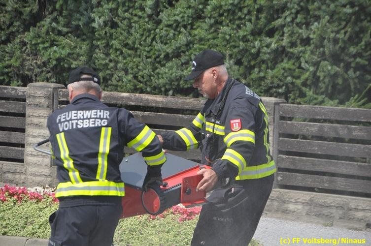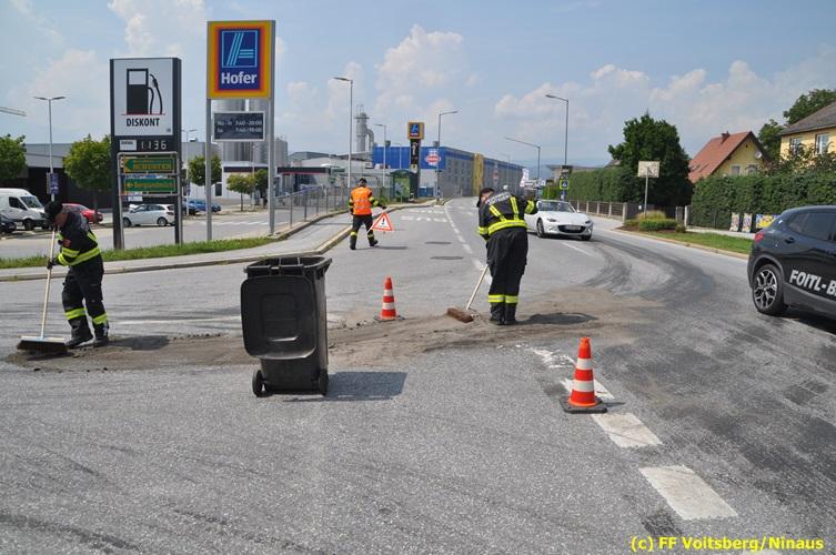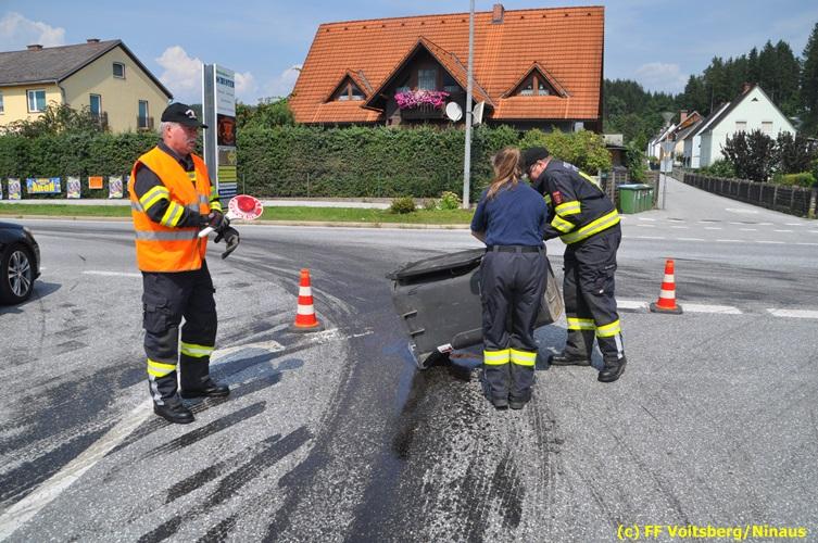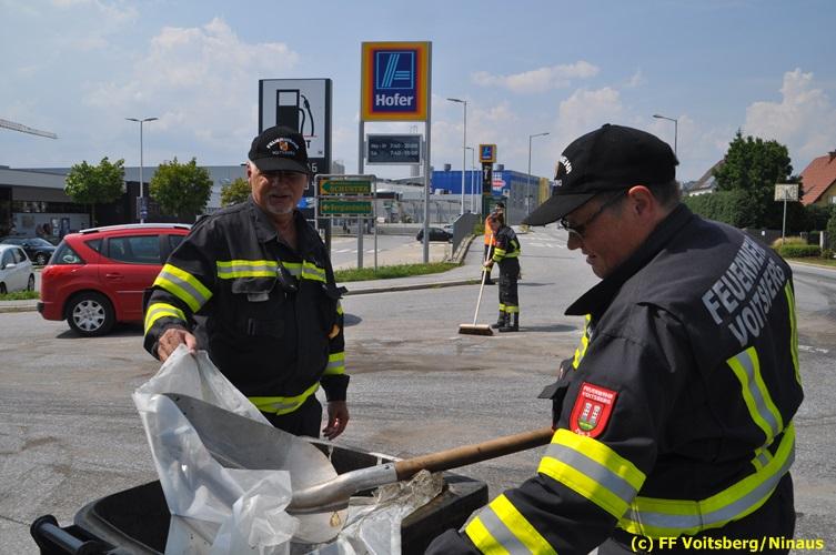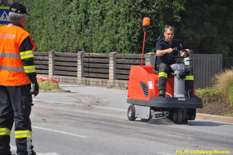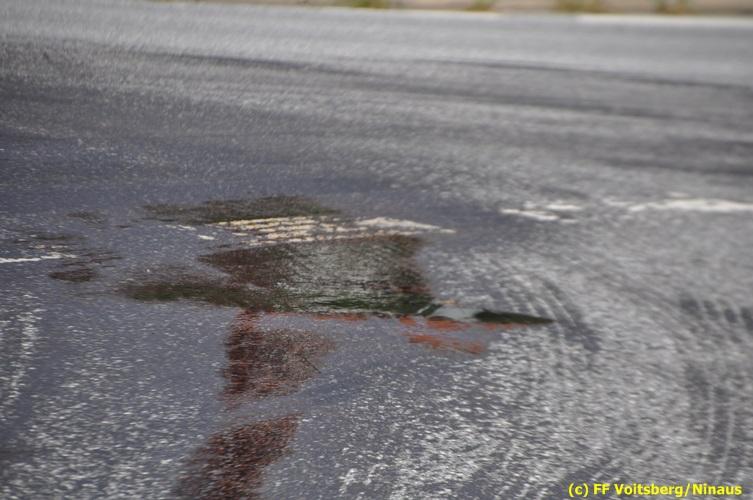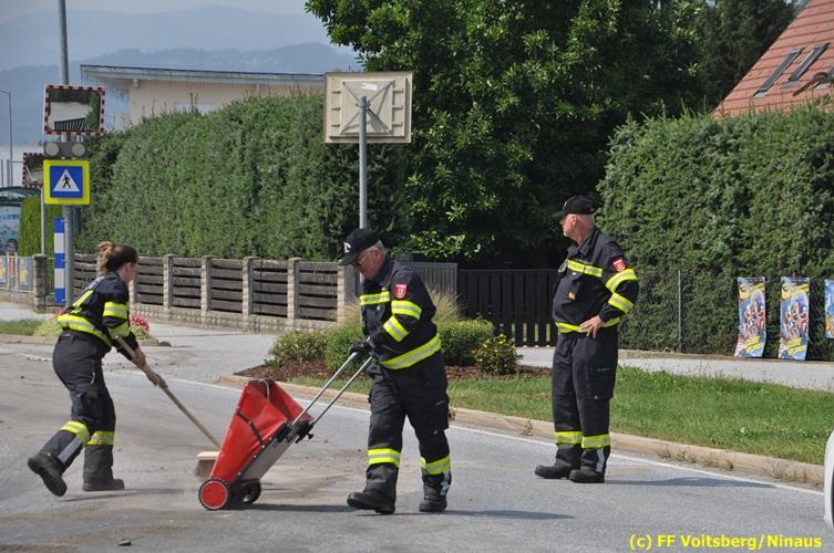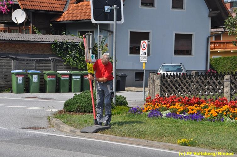 VOITSBERG, am 06.08.2018 Nach einem Platzer eines Ölschlauches bei einem PKW kam es am Montag, 6. August 2018 um ca. 13:30 Uhr in der Grazer Vorstadt in Voitsberg zu einer Verschmutzung der Fahrbahn durch das ausgelaufene Öl. Die alarmierte FF Voitsberg sicherte die Einsatzstelle ab und band mittels Bindemittel die ausgeflossenen Betriebsmittel. Das verunreinigte Ölbindemittel wurde mittels feuerwehreigener Kehrmaschine aufgesaugt und fachmännisch entsorgt. Während des Einsatzes wurde die Umleitungsstraße der B 70 kurzfristig gesperrt, wobei es zu einem Rückstau in beiden Richtungen kam. Eingesetzt waren 8 Einsatzkräfte unter der Einsatzleitung von BR Ing. Klaus Gehr sowie zwecks Aufstellen von Warntafeln ein Bediensteter des Bauhofes Voitsberg. Text und Fotos: Walter Ninaus/FF Voitsberg