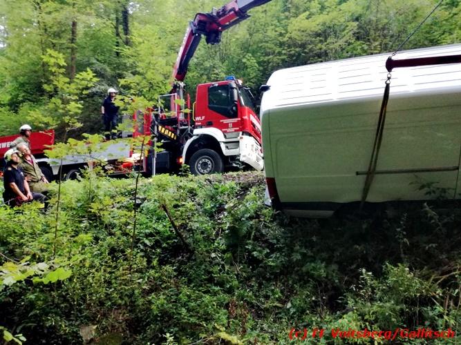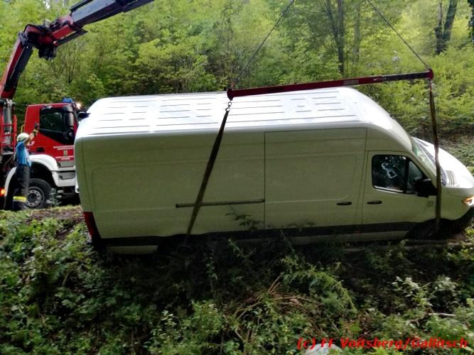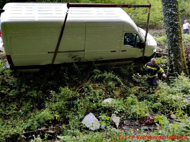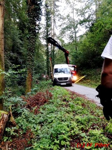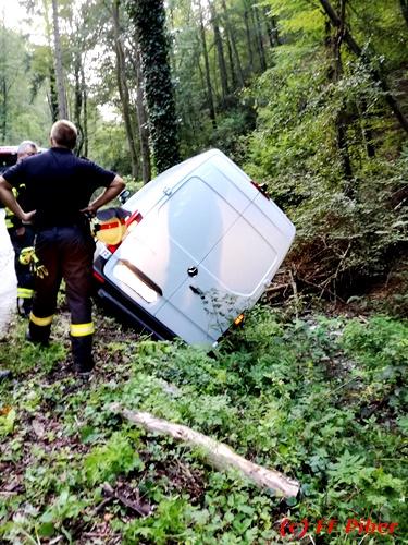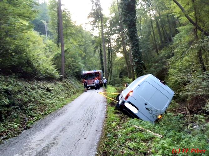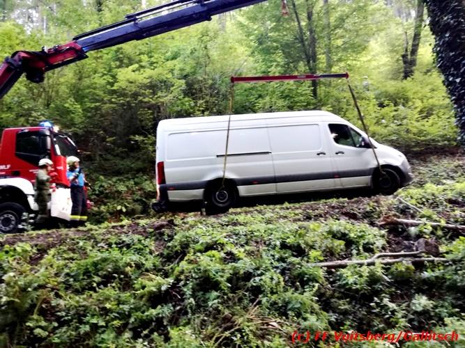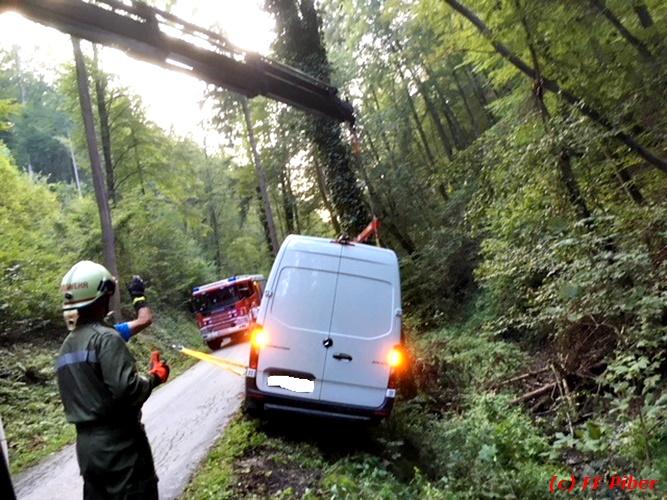 VOITSBERG, am 09.08.2018 Aus ungeklärter Ursache kam am Donnerstag, 09.08.2018 ein Lenker eines Klein-Transporters in Piberegg auf der Rösslerwirt-Straße von der Straße ab und drohte abzustürzen. Der Lenker konnte sich selbst aus dem Fahrzeug befreien und verständigte die Polizeiinspektion Köflach. Die zuständige Feuerwehr Piber sicherte den Klein-Transporter mittels Seilwinde und richtete eine Umleitung für den Verkehr ein, da die schmale Straße während der Bergungsarbeiten gesperrt werden musste. Zur Bergung des Fahrzeuges wurde über die LLZ das WLF-Kran der FF Voitsberg nachalarmiert. Gemeinsam mit dem WLF-Kran und der Seilwinde der FF Piber konnte das Fahrzeug erfolgreich geborgen werden. Eingesetzt waren unter der Einsatzleitung von OBR Christian Leitgeb insgesamt 19 Einsatzkräfte der Feuerwehren Piber und Voitsberg sowie die Polizei Köflach mit 2 Beamten. Nach der erfolgreichen Bergung konnte der Fahrer die Fahrt fortsetzen. Text: FF Piber/Leitgeb Fotos: FF Piber, FF Voitsberg/Gallitsch