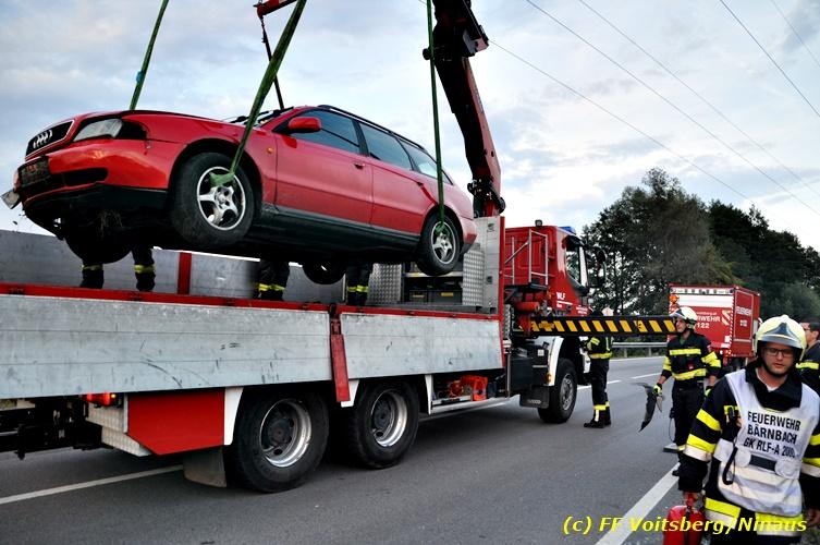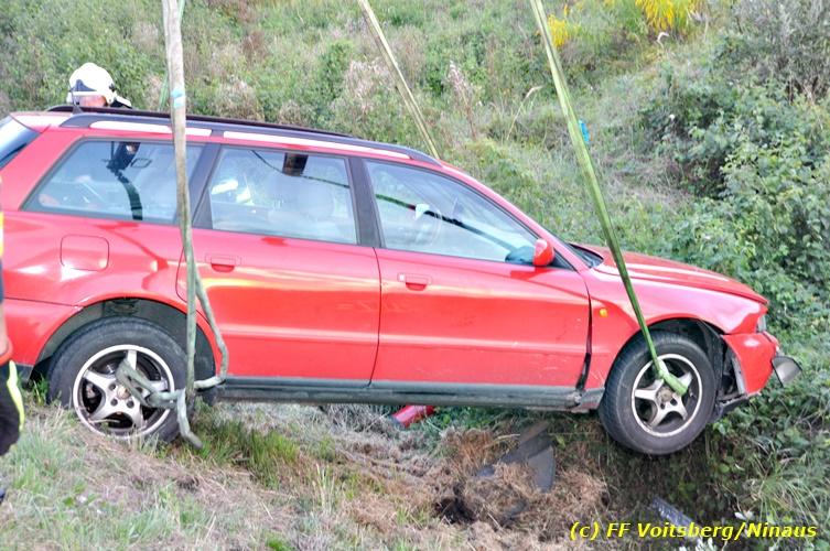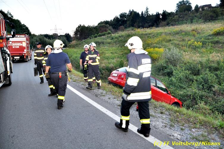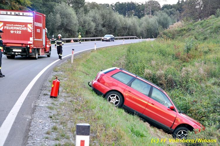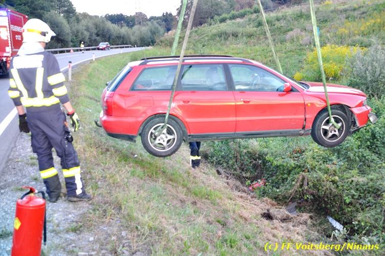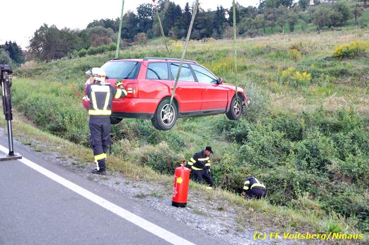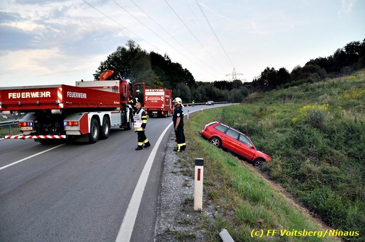 VOITSBERG, am 18.08.2018 Ein PKW kam aus ungeklärter Ursache von der B 70 ab und landete in einem Straßengraben. Die alarmierte FF Bärnbach forderte zwecks Bergung das WLF-K der FF Voitsberg an. Das geborgene Fahrzeug wurde an einem Abstellplatz abgestellt. Während der Bergungsarbeiten wurde die B 70 gesperrt und der Verkehr umgeleitet. Personen wurden keine verletzt.