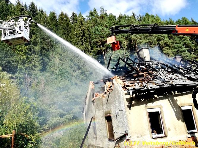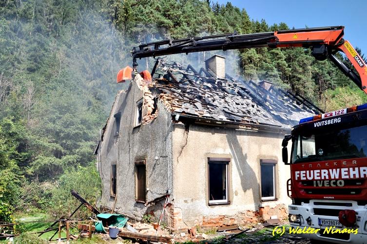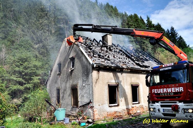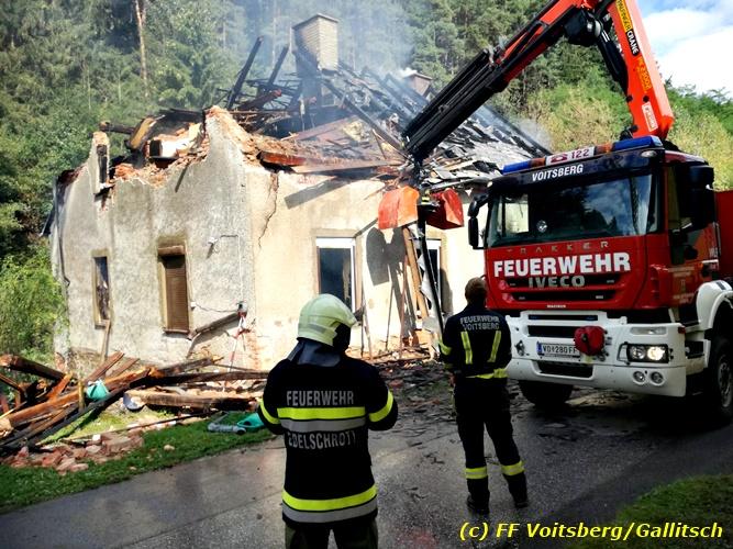 VOITSBERG, am 23.09.2018 Das WLF der FF Voitsberg wurde am Sonntag, 23. September 2018 um 12:50 Uhr nach einem Wohnhausbrand in Edelschrott (Nähe Lustiger Bauer) am Vormittag von der Einsatzleitung zwecks Abtragen des Dachstuhles aus Sicherheitsgründen mit dem Holzgreifer alarmiert.