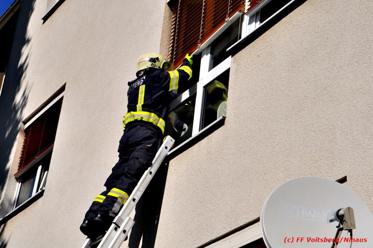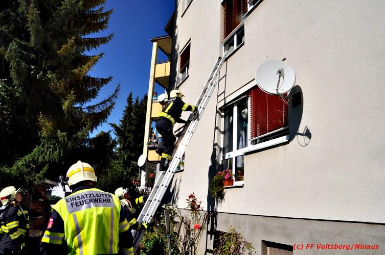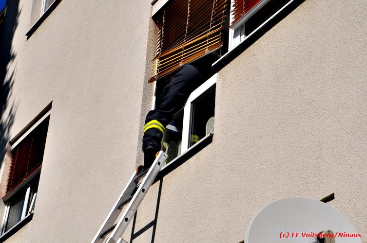 VOITSBERG, am 26.09.2018 Die FF Voitsberg wurde am Mittwoch, 26. September 2018 um 12:32 Uhr zu einer Unterstützung des Roten Kreuzes gerufen. Im ersten Stock eines Mehrparteienhauses in der Grillparzerstrasse in Voitsberg konnte eine am Boden liegende Person sich nicht mehr aufrichten. Aufgrund der verschlossenen Wohnung musste ein Kamerad der FF Voitsberg über eine Schiebeleiter durch ein geöffnetes Fenster in die Wohnung einsteigen und die Tür öffnen. Das Rote Kreuz versorgte die ansprechbare Person und überstellte sie ins LKH Voitsberg. Eingesetzte Kräfte: FF Voitsberg mit 7 Kräften (Einsatzleiter: BR Ing. Klaus Gehr) Roten Kreuz mit 2 Sanitätern Polizei Voitsberg mit 2 Beamten Text und Fotos: Walter Ninaus/FF Voitsberg