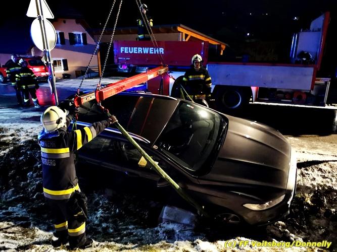 VOITSBERG, am 07.01.2019 Die FF Piber forderte am Montag, 7. Jänner 2019 in den frühen Abendstunden zwecks Bergung eines PKW in der Knobelbergstrasse in Köflach das WLF-Kran der FF Voitsberg an. Nach der erfolgreichen Bergung konnte die Fahrt auf eigener Achse fortgesetzt werden. Fotos: Markus Donnelly/FF Voitsberg Text: Walter Ninaus/FF Voitsberg