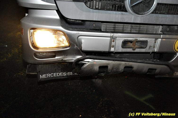 VOITSBERG, am 10.01.2019 Das WLF-Kran der FF Voitsberg wurde am Donnerstag, 10. Jänner 2019 um ca. 17 Uhr seitens der FF Krems angefordert, um einen schwer beschädigten PKW nach einem Zusammenstoß mit einem LKW in der Teigitschstrasse in Voitsberg von der Unfallstelle zu entfernen und zu einem gesicherten Abstellplatz zu bringen, da Schmierstoffe austraten. Text und Fotos: Walter Ninaus, FF Voitsberg