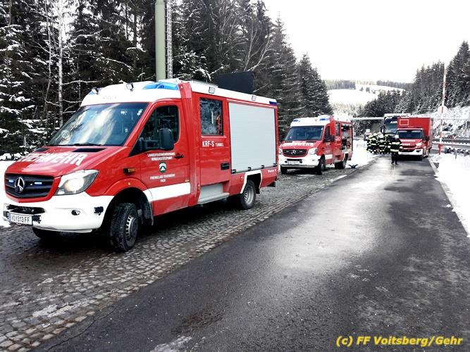 VOITSBERG, am 29.01.2019 Am Dienstag, 29. Jänner 2019 am frühen Nachmittag streifte ein polnischer LKW–Zug im Mitterbergtunnel der A2 mit seinem Tank die Randleiste und beschädigte diesen. Kurz nach dem Tunnel blieb er am Pannenstreifen stehen. Nach ca. 1 Stunde inspizierte ein vorbeifahrendes Fahrzeug der ASFINAG den am Pannenstreifen stehenden LKW und bemerkte den lecken Tank. Um 14.15 Uhr wurde Öl–Alarm ausgelöst und die FF Modriach, FF Pack und der Öl–Schadenszug der FF Voitsberg bzw. der BFV Voitsberg mit den Gefahrgutbeauftragten BI Kremaucz und BI Krenn sowie BR Gehr rückten aus. Der restliche Diesel wurde umgepumpt und das Leck abgedichtet. Der Chemiealarmdienst wurde alarmiert und ordnete das Ausbaggern des kontaminierten Materials an. Die Feuerwehren rückten um 17:30 Uhr wieder ein. Eingesetzt Kräfte: FF Pack FF Modriach Öl – Schadenszug Voitsberg Autobahnmeisterei Autobahnpolizei Chemiealarmdienst Text: Gehr Klaus/FF Voitsberg Fotos: Gehr, Buchegger C. (beide FF Voitsberg)