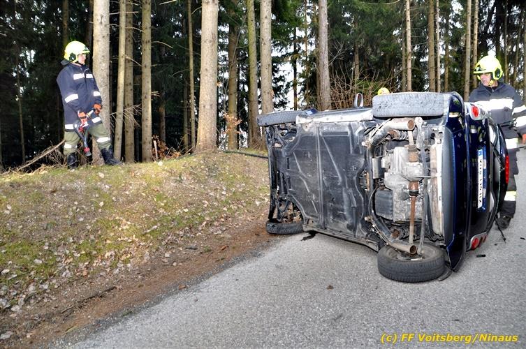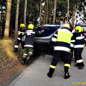 VOITSBERG, am 20.02.2019 Die Feuerwehren Krems und Voitsberg wurden am Mittwoch, 20. Feber 2019 um 15:58 Uhr zu einem Einsatz gerufen. Die Meldung lautete, „Person nach Verkehrsunfall im umgestürzten Fahrzeug eingeklemmt“. Zum Glück konnte die Lenkerin mit eigenen Kräften das Fahrzeug verlassen, sodass keine Menschenrettung erforderlich war. Die unbestimmten Grades verletzte Frau wurde vom Roten Kreuz erstversorgt und ins LKH Voitsberg eingeliefert. Die Feuerwehren Krems und Voitsberg bargen das leicht beschädigte Fahrzeug. Die Polizei führte die Erhebungen durch. Text und Fotos: Walter Ninaus, FF Voitsberg