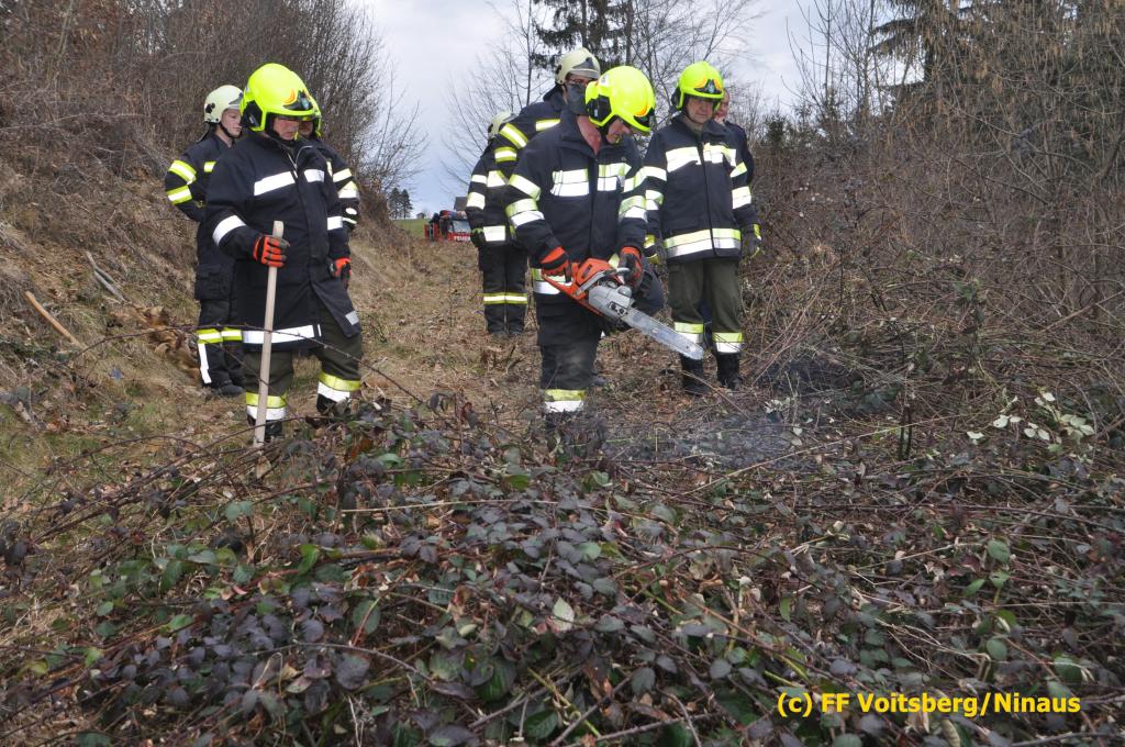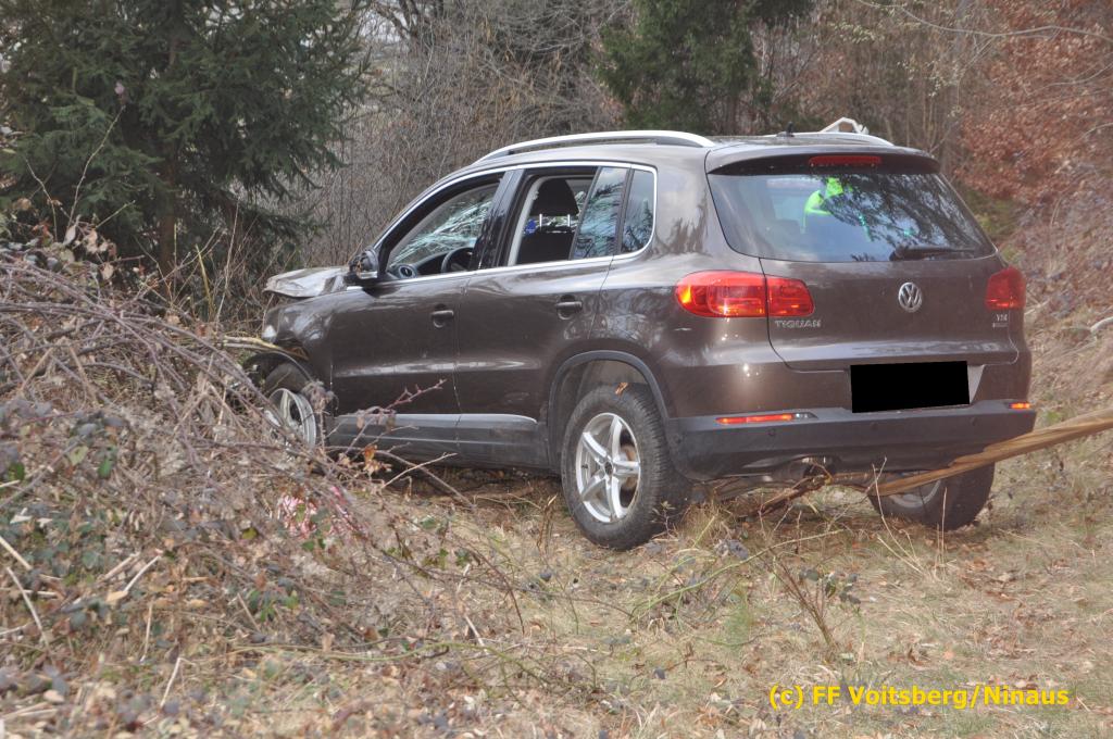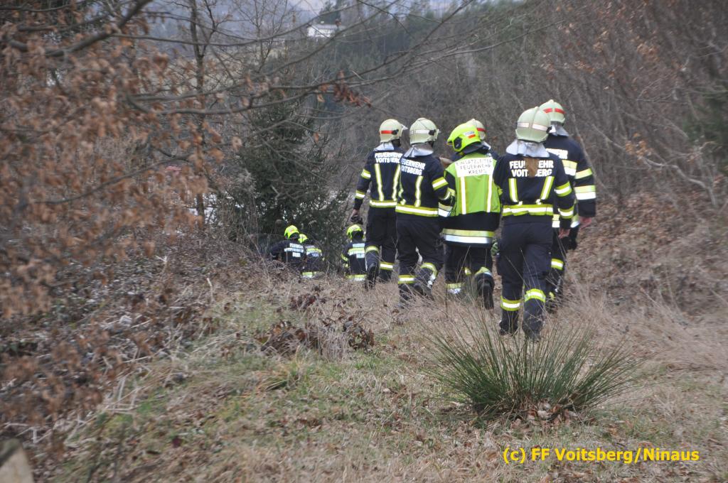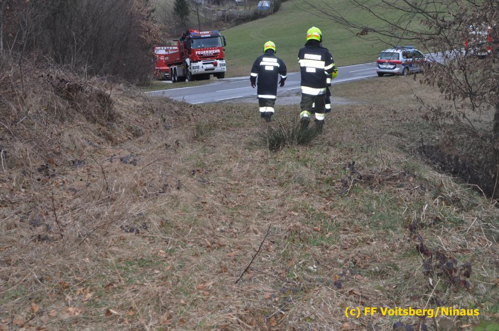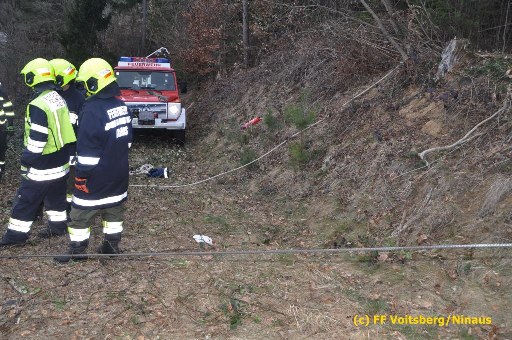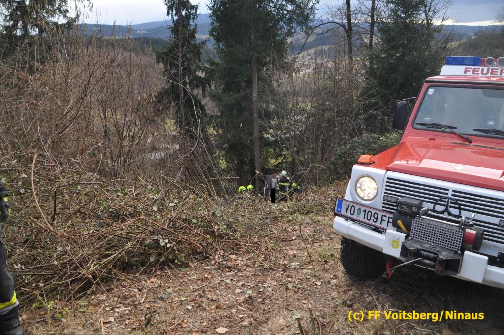 VOITSBERG, am 08.03.2019 Am Freitag, 8. März 2019 in den Nachmittagsstunden kam eine Lenkerin mit ihrem PKW auf der Lobminger Landesstrasse kurz nach der Ruppbauernhöhe in Richtung Voitsberg aus unbekannten Gründen links von der Fahrbahn ab, fuhr ca. 150 m einen Waldweg bergab und stürzte von diesem ca. 30 m nach links überschlagend gegen einen Baum und blieb dort hängen. Die Lenkerin konnte das Fahrzeug wie durch ein Wunder unverletzt verlassen. Der Einsatzleiter der zur Bergung alarmierten FF Krems entschied nach Feststellung der Lage als Unterstützung die FF Voitsberg anzufordern. Um zum bergenden Fahrzeug zu gelangen, musste mit Motorsägen eine Schneise geschnitten werden. Mit Seilwinden und Umlenkrollen wurde das schwer beschädigte Fahrzeug in Zusammenarbeit beider Wehren geborgen und von einem Autofahrerclub abgeschleppt. Text: Walter Ninaus, FF Voitsberg Fotos: Gallitsch und Ninaus, beide FF Voitsberg