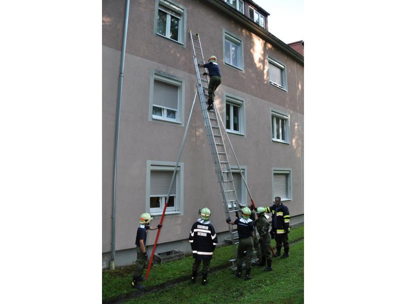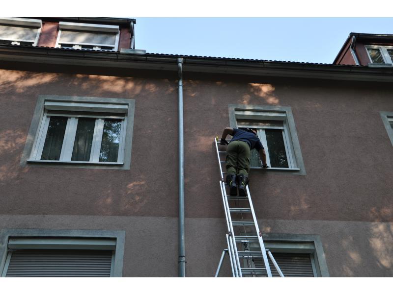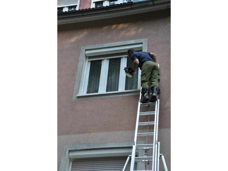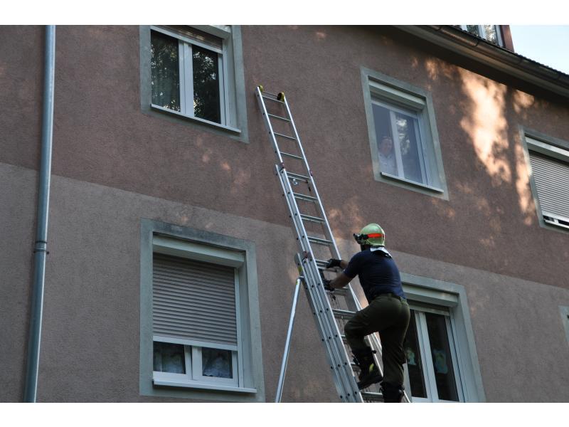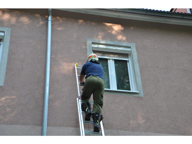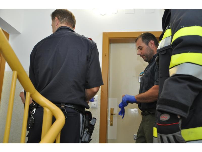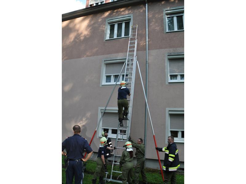 VOITSBERG, am 14.06.2014 Nachdem ein Wohnungsinhaber seit einigen Tagen nicht mehr von einem Bekannten gesehen wurde, verständigte dieser die Polizei, die wiederum über die LLZ die FF Voitsberg zwecks Wohnungsöffnung alarmierte. Zuerst wurde über einer Schiebeleiter versucht, durch die geschlossenen Fenster in die Wohnung Einschau zu halten. Da niemand zu sehen war, entschloss man sich zur Türöffnung und fand schlussendlich den Abgängigen.