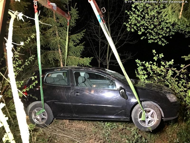 VOITSBERG, am 27.04.2019 Über Anforderung der einsatzleitenden Feuerwehr Maria Lankowitz wurde zwecks Bergung eines Pkw`s, nachdem dieser über eine Böschung geriet, das WLF-Kran der FF Voitsberg in den Abendstunden des Samstag, 27. April 2019 alarmiert. In Zusammenarbeit beider Feuerwehren konnte der Einsatz erfolgreich abgeschlossen werden.