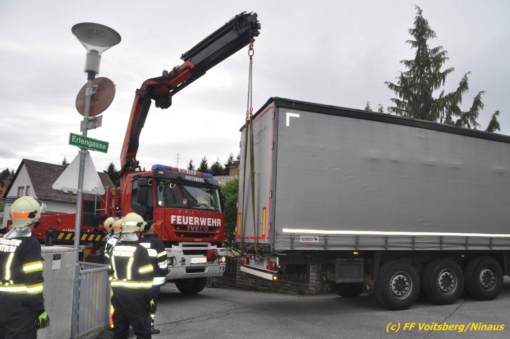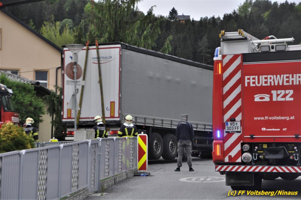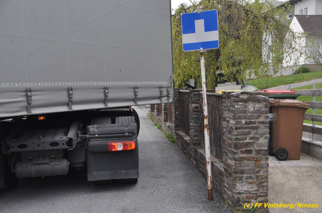 VOITSBERG, am 30.04.2019 Die FF Voitsberg wurde am Dienstag, 30. April 2019 kurz vor 9 Uhr zu einer Hilfeleistung gerufen. Ein LKW-Lenker aus Litauen fuhr trotz mehrfacher Verbots- und Gebotsschilder aufgrund des Vorschlages seines Navi in die Lindenhofgasse, weiter in den Weidenweg und blieb bei der Kreuzung mit der Erlengasse stecken. Er konnte weder vor noch zurück. Mit dem WLF-Kran wurde der Sattelschlepper aus seiner misslichen Situation gehoben und von den Feuerwehrkameraden durch die Erlengasse zu seinem Ziel gelotst. Schaden entstand keiner. Eingesetzte Kräfte unter Einsatzleiter OBI DI (FH) Bernd Unger: FF Voitsberg mit 7 Kameraden Text und Fotos: Walter Ninaus, FF Voitsberg