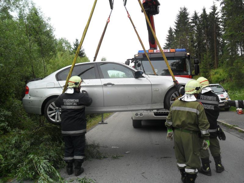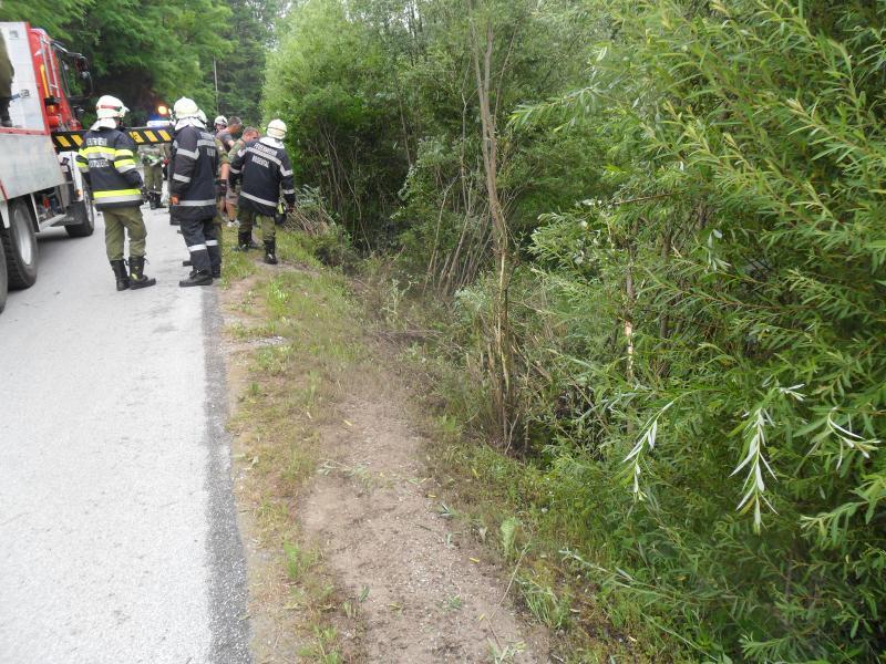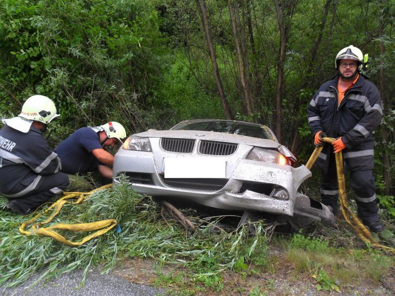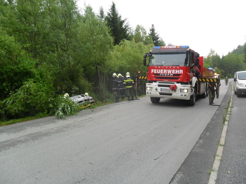 Aus ungeklärter Ursache geriet ein PKW von der Straße ab und kam auf einer Böschung unterhalb der Gemeindestraße zu stehen. Nach Anforderung der FF Rosental über die LLZ wurde der verunfallte PKW