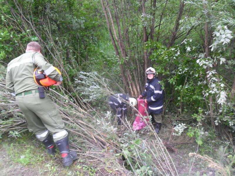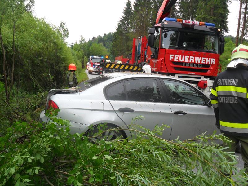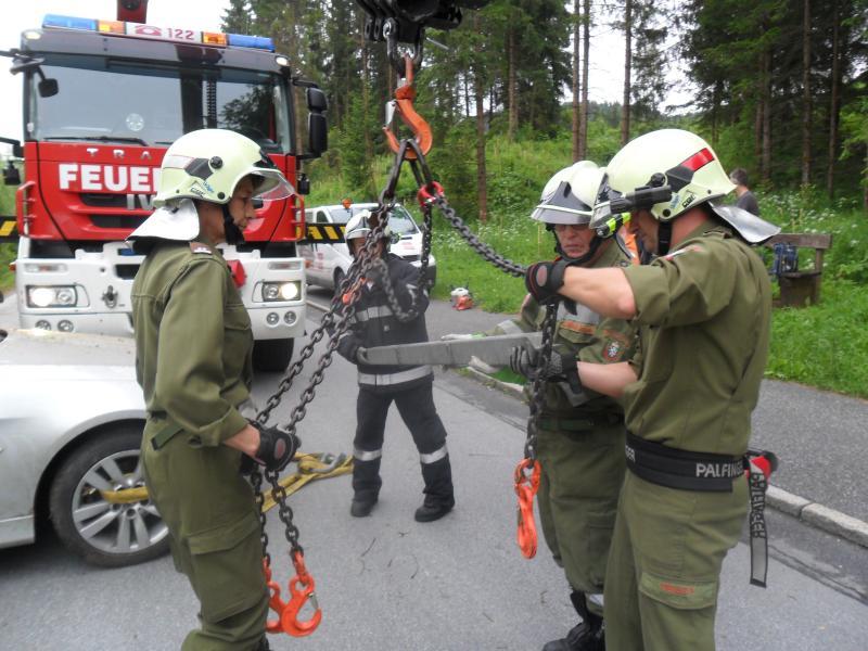 in Zusammenarbeit beider Wehren mittels WLF-Kran Voitsberg geborgen.