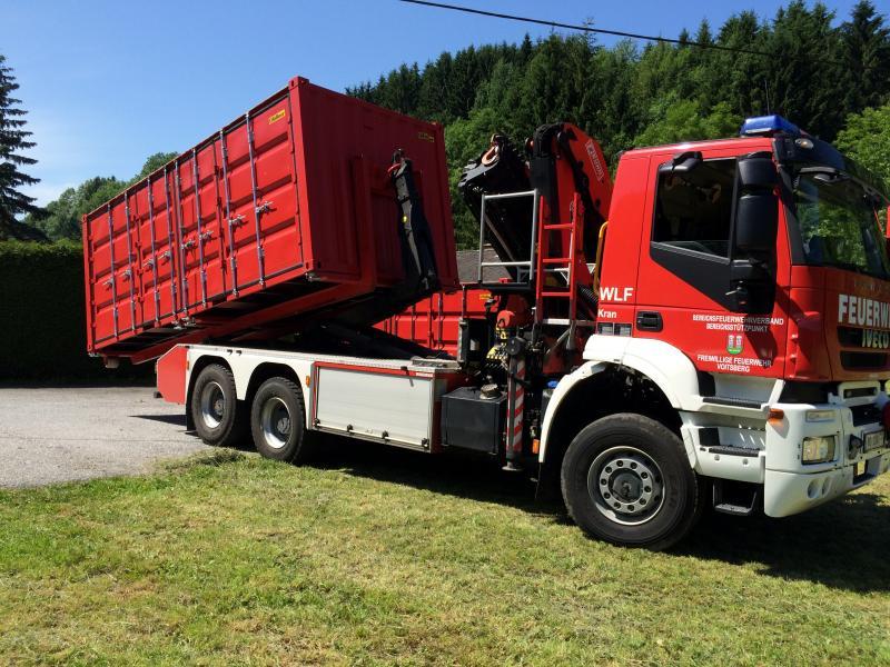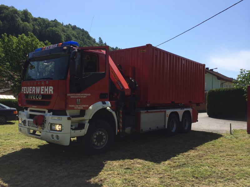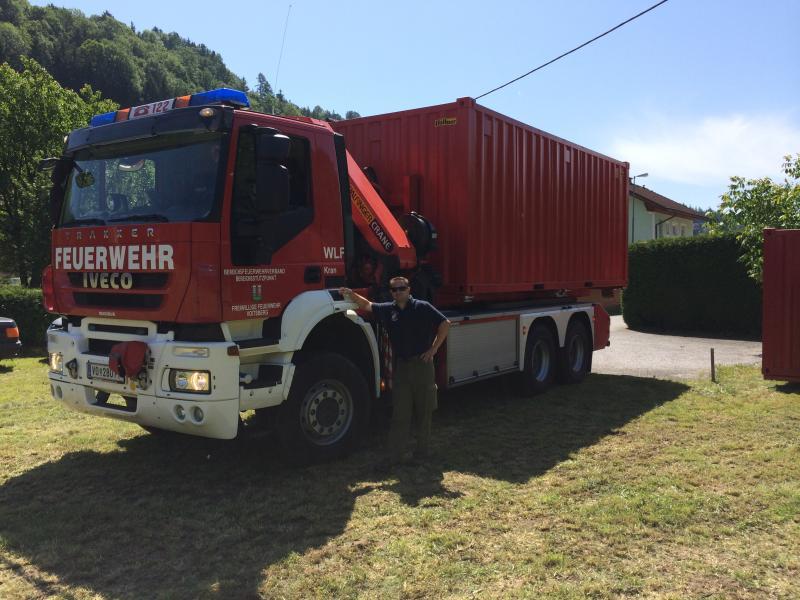 VOITSBERG, am 07.06.2014 Vorbereitungsarbeiten für den Bereichsjugendleistungsbewerb der FF Afling. Zwei Container wurden im Auftrage der FF Afling von Lebring nach Afling mit dem WLF transportiert.