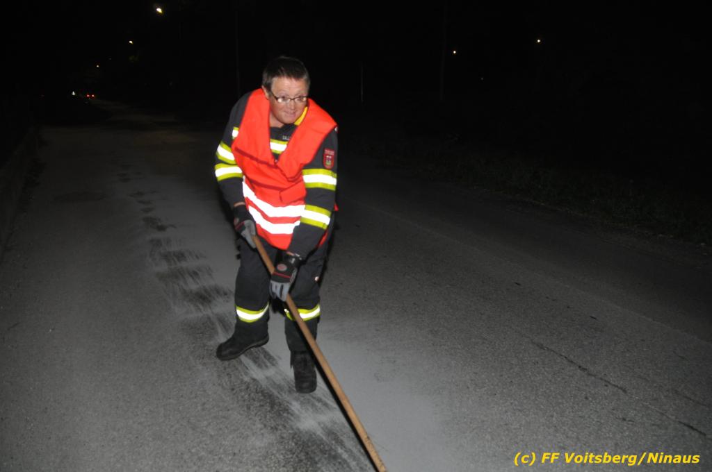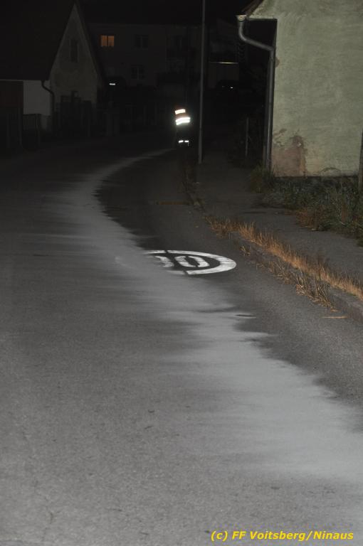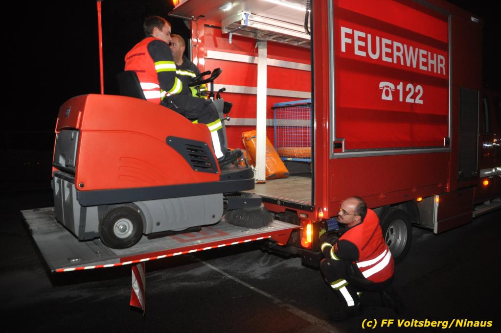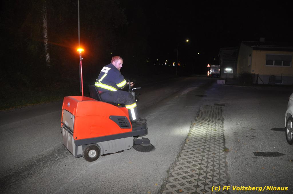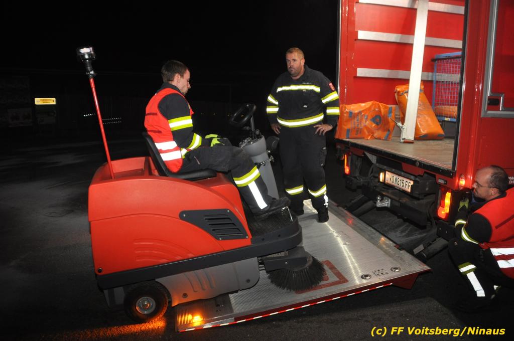 VOITSBERG, am 01.10.2019 Aufgrund eines technischen Gebrechens verlor am 1. Oktober um ca. 20 Uhr ein Kfz Motoröl und verschmutzte die Ruhmannstrasse und die Arnsteinstrasse in Voitsberg auf einer Gesamtlänge von ca. 500 m. Die alarmierte Feuerwehr Voitsberg rückte aus, um die ausgeflossenen Betriebsmittel zu binden und mit einer feuerwehreigenen Kehrmaschine einzusammeln. Das verunreinigte Bindemittel wurde fachgerecht entsorgt. Ein Mitarbeiter des städtischen Bauhofes sicherte die Gefahrenstellen mit Hinweisschilder „Ölspur“ ab.