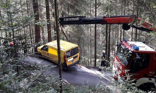 Bergung eines Pkw, nachdem dieser über eine Böschung geriet.