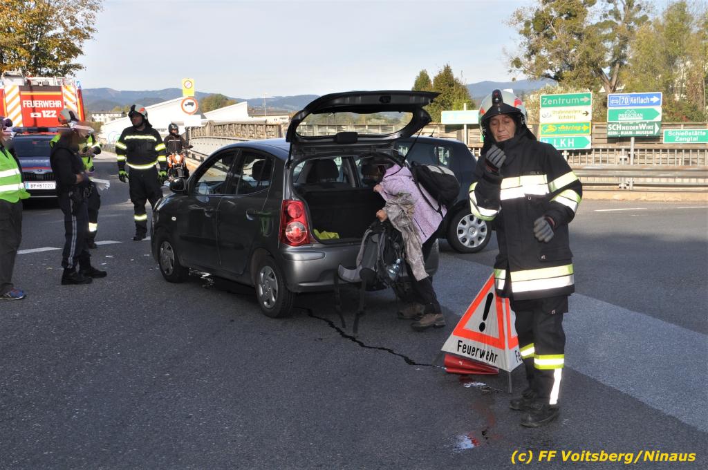 VOITSBERG, am 20.10.2019 Am Sonntag, 20. Oktober kurz nach 10 Uhr kam es bei der Kreuzung Arnsteinstrasse – Lindenhofgasse in Voitsberg zu einem Zusammenstoß zweier PKW. Beide Fahrzeuge wurden durch den Aufprall schwer beschädigt. Verletzt wurde niemand. Die FF Voitsberg brachte beide Fahrzeuge von der Straße, band ausgeflossene Betriebsmittel und reinigte die Fahrbahn von herumliegenden Wrackteilen. Beide Fahrzeuge wurden von Autofahrerclubs abgeschleppt. Die Polizei Voitsberg führte die Erhebungen durch und regelte den Verkehr. Eingesetzt unter Einsatzleiter OLM Christian Buchegger waren 7 KameradInnen der FF Voitsberg. Text und Fotos: Walter Ninaus/FF Voitsberg