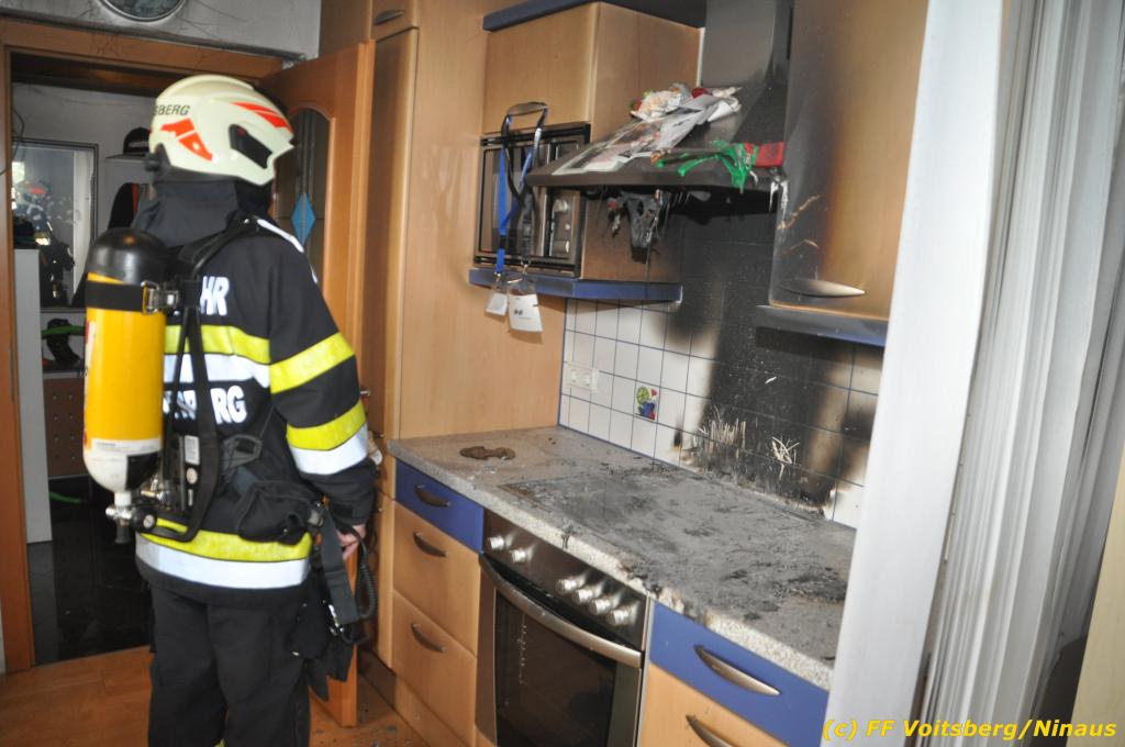VOITSBERG, am 25.01.2020 In einer Wohnung eines Mehrparteienhauses in der Baumkirchnerstrasse in Voitsberg brach am Samstag, 25. Jänner 2020 kurz vor 10 Uhr in der Küche im Bereich des Elektroherdes ein Brand aus und griff auf den darüberliegenden Dunstabzug über. Während eine Mitbewohnerin die Hilfskräfte alarmierte löschte ein Bewohner des Hauses den Brand in der Entstehung und konnte größeren Schaden verhindern.