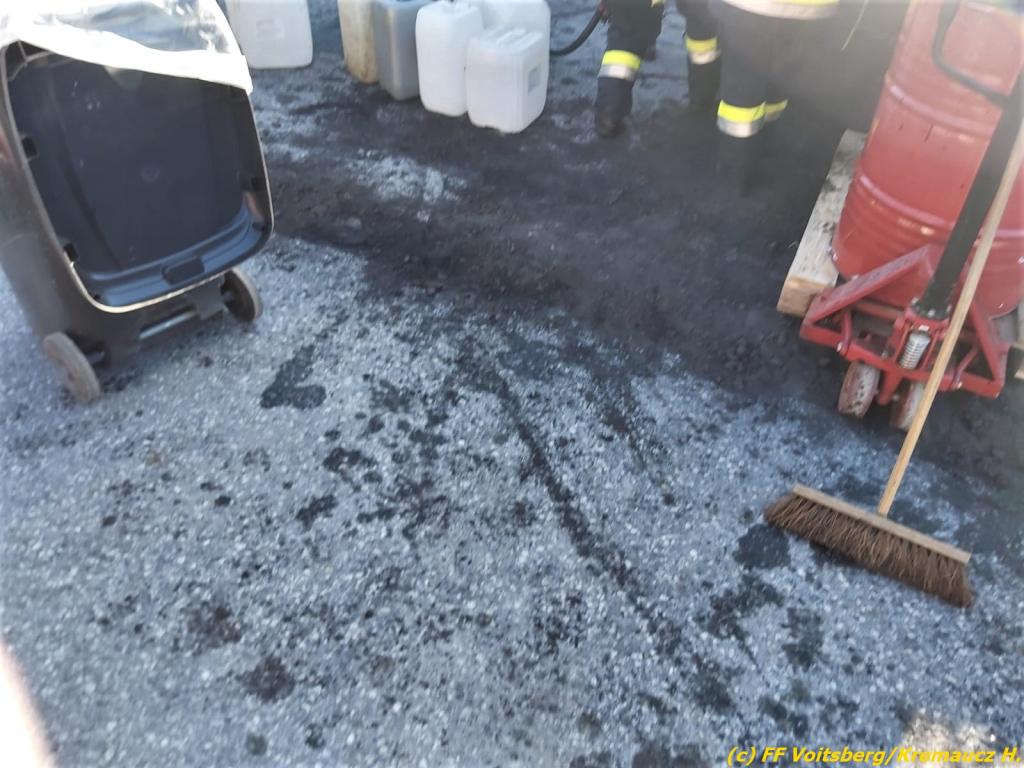Der Behälter wurde mit einer Mineralumfüllpumpe entleert und ca. 200 Liter in bereitgestellte Kanister gepumpt und danach fachgerecht entsorgt. Die FF Kainach band die ausgelaufenen Betriebsmittel auf der Landesstraße mit Ölbindemittel.