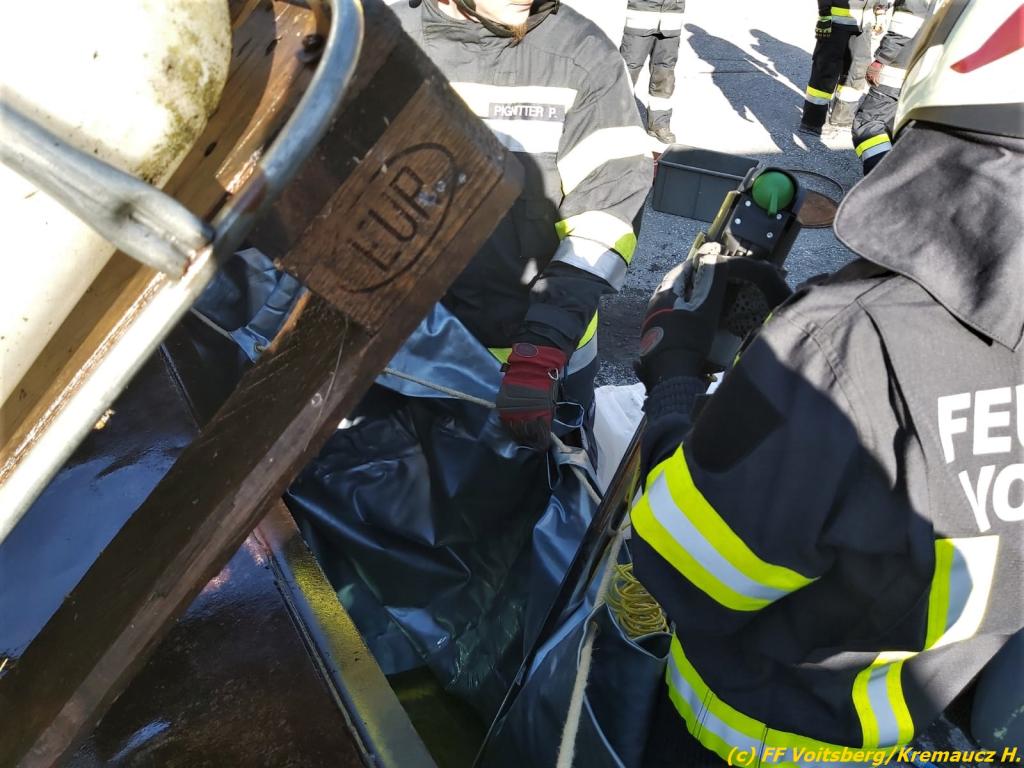 VOITSBERG, am 15.03.2020 Über Anforderung der einsatzleitenden Feuerwehr Kainach wurde die FF Voitsberg als zuständige Ölstutzpunktfeuerwehr am Sonntag, 15. März in den Nachmittagsstunden zu einem Einsatz mit dem Ölschadenfahrzeug in Kainach alarmiert.