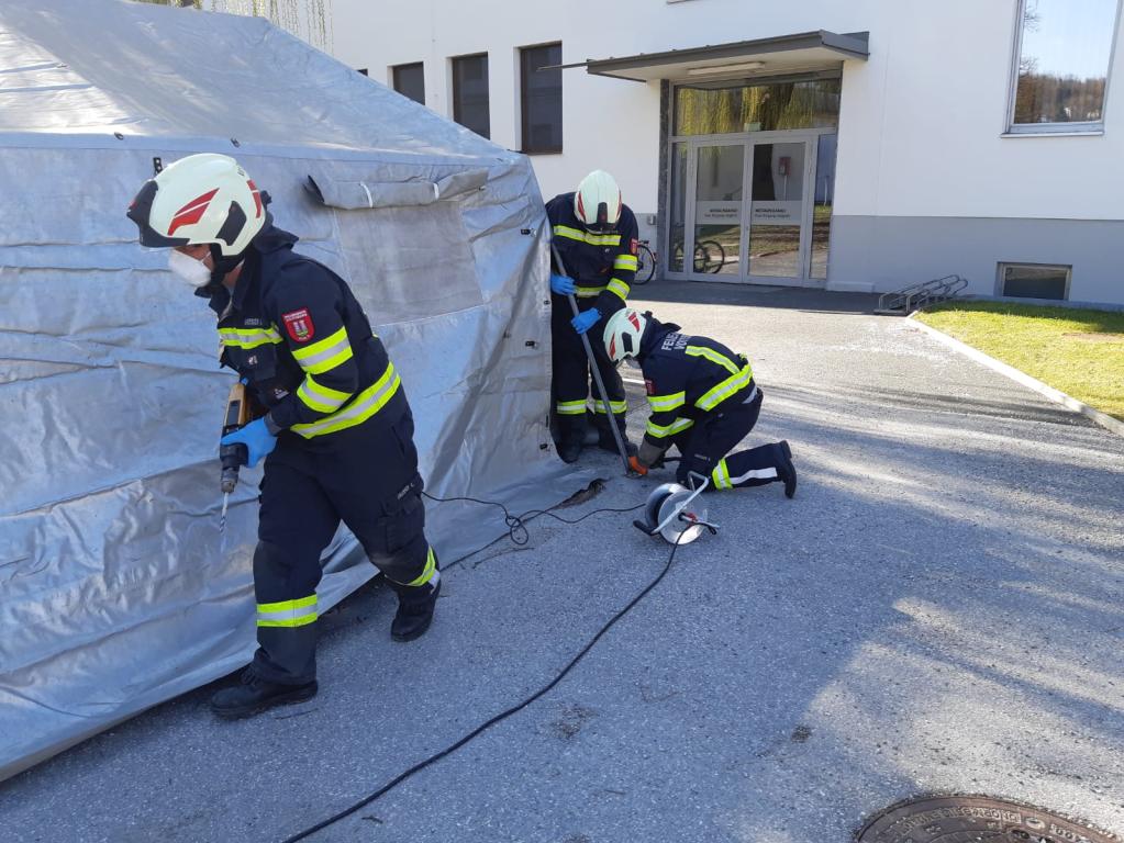 VOITSBERG, am 01.04.2020 Beim LKH Voitsberg wurde ein Zelt unter Einhaltung der gesetzlichen Schutzmaßnahmen aufgestellt. Es soll als Kontrollzelt dienen.