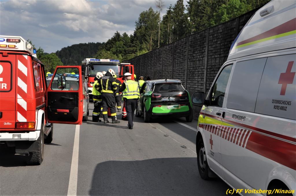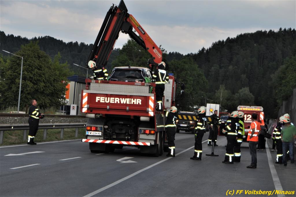 Zwecks Bergung und Absicherung der Unfallstelle wurden laut Alarmplan die Feuerwehren Voitsberg, Krems und Rosental alarmiert, wobei die FF Rosental wieder ins Rüsthaus einrücken konnte. Die Feuerwehren Voitsberg und Krems bauten einen Brandschutz auf, entfernten herumliegende Wrackteile und banden ausgelaufene Betriebsmittel. Da es sich bei PKW um ein Elektrofahrzeug handelte, musste es in eine Fachwerkstätte mit dem WLF Voitsberg zwecks Gefahr in Verzug überstellt werden.