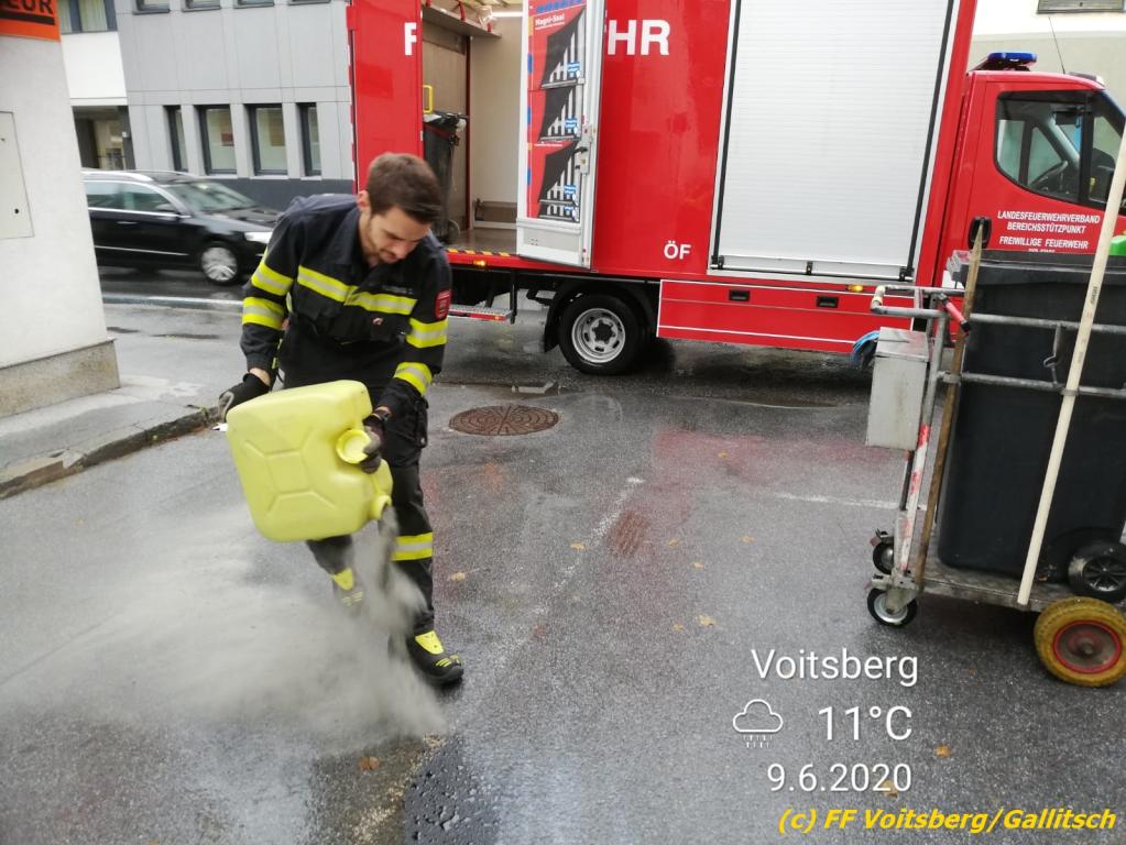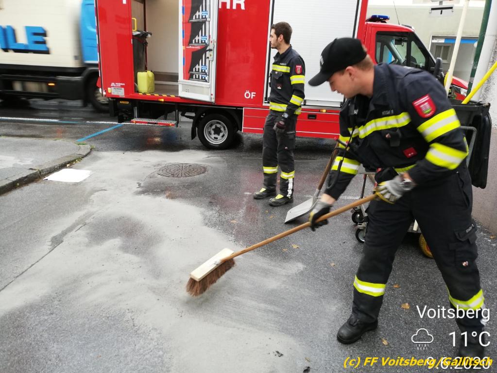 VOITSBERG, am 09.06.2020 Am Dienstag, 9. Juni 2020 um 08:11 Uhr wurde zu einem Einsatz in die Jungferngasse in Voitsberg gerufen. Ausgelaufene Betriebsmittel drohten in die Kanalisation zu gelangen. Mit aufgestreuten Ölbindemittel konnte dies verhindert werden.