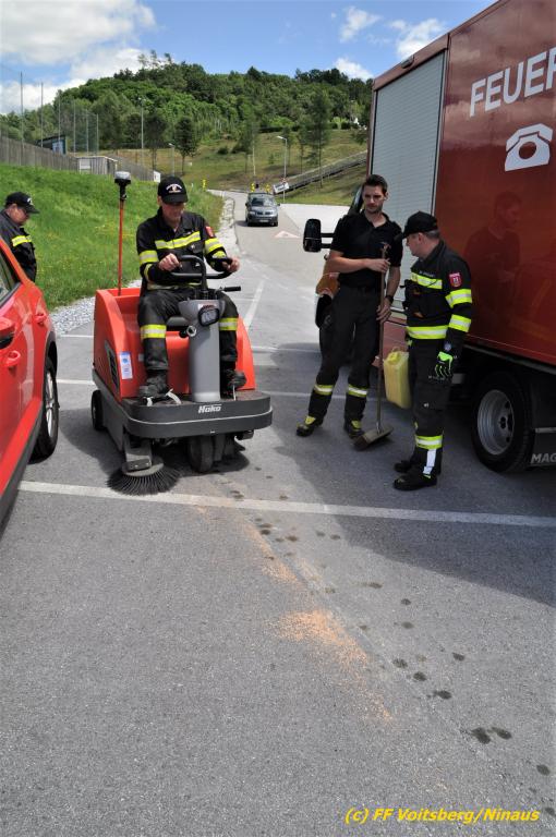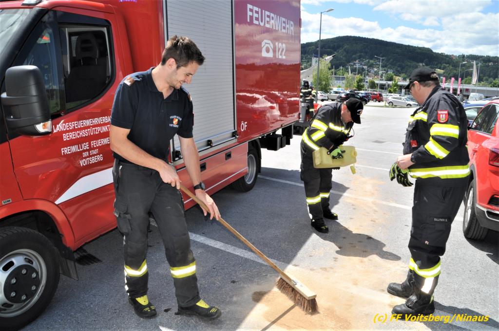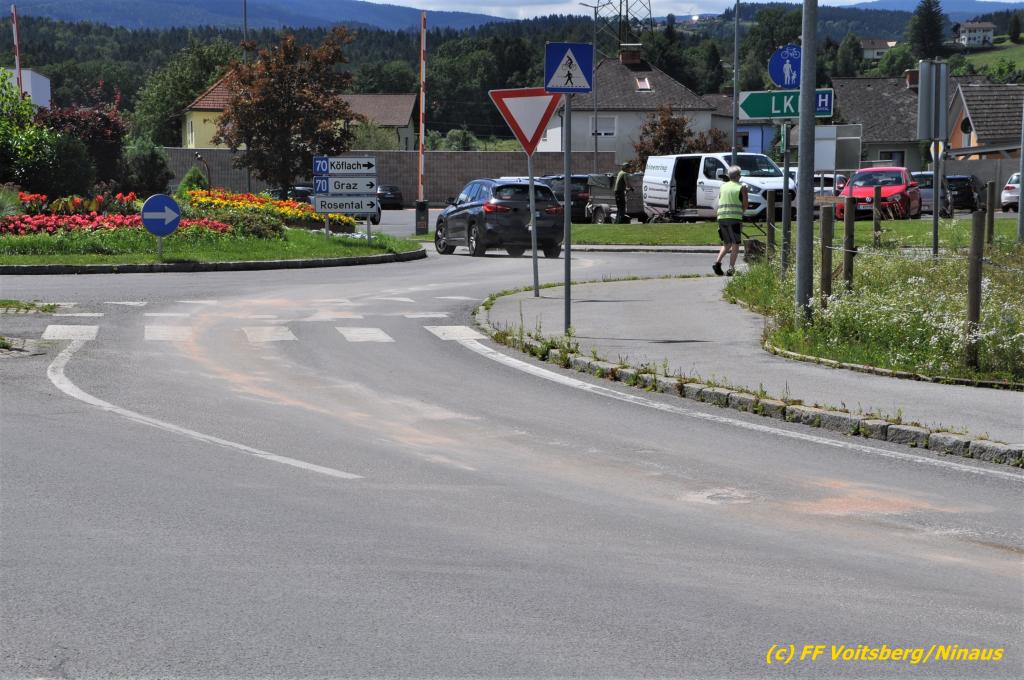 VOITSBERG, am 07.07.2020 Die Feuerwehren Bärnbach und Voitsberg wurden am Dienstag, 7. Juli 2020 in den späten Vormittagsstunden zu einem Schadstoffeinsatz alarmiert. Ein unbekannter Verursacher zog vom Kreisverkehr Lidl beginnend bis in die Schießplatzstrasse in Voitsberg eine ca. 2km lange, vermutliche Dieselspur.