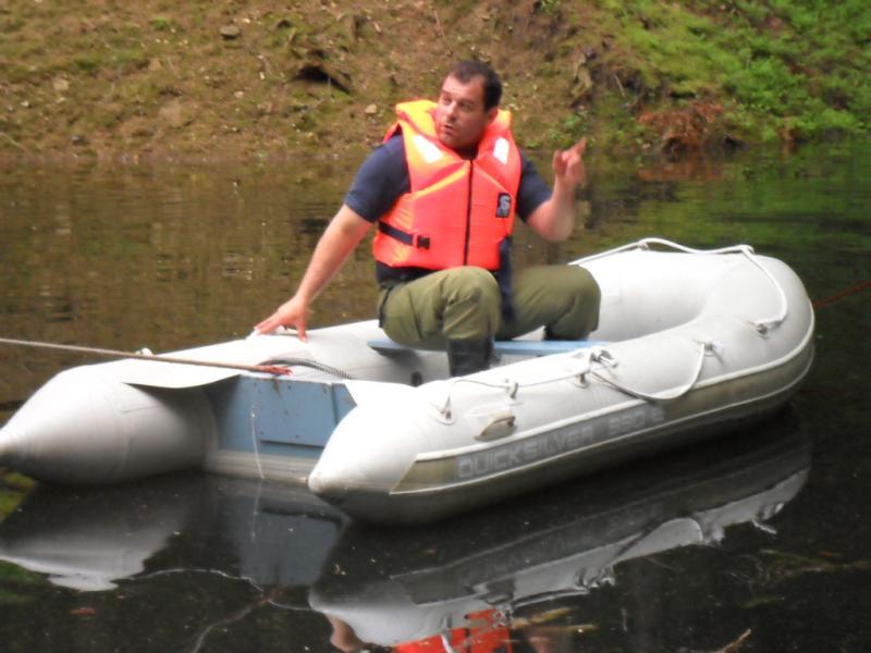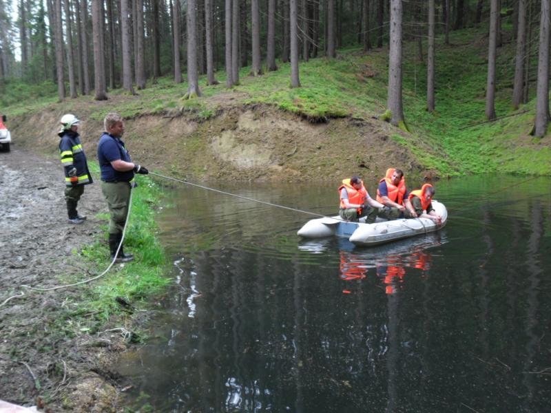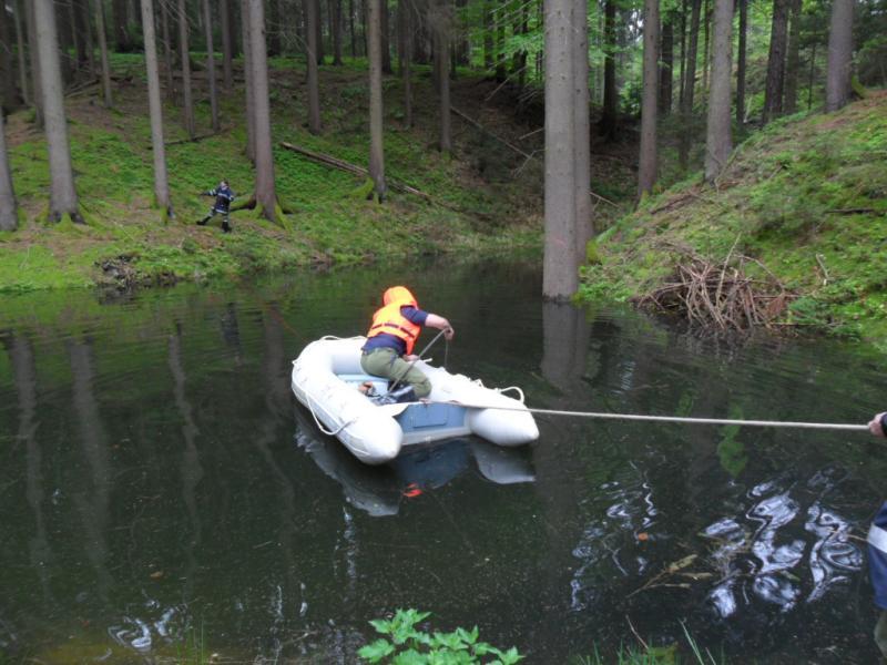 VOITSBERG, am 25.04.2014 Nachdem ein Überlauf-Abflussrohr verstopft war, drohte ein Teich über die Ufer zu treten und der Damm zu brechen. Unter Einsatz des Schlauchbootes der FF Voitsberg wurde unter Verwendung einer Spirale die Verstopfung behoben und das überschüssige Wasser konnte wieder abfließen.