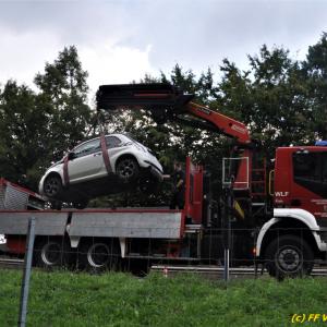VOITSBERG, am 22.08.2020 Die FF Voitsberg wurde am 22. August 2020 um 17:33 Uhr zu einer Fahrzeugbergung als Unterstützung der einsatzleitenden FF Krems auf die Umfahrungsstraße Voitsberg der B70 auf der Höhe der Turmöl-Tankstelle alarmiert. Ein Pkw kam aus unbekannten Gründen rechts von der B 70 ab, überschlug sich mehrmals und kam auf einer Wiese zu stehen, wobei niemand verletzt wurde.