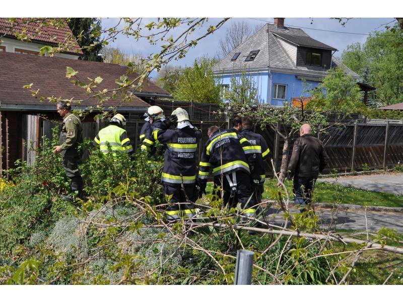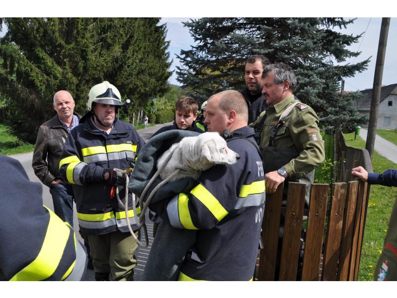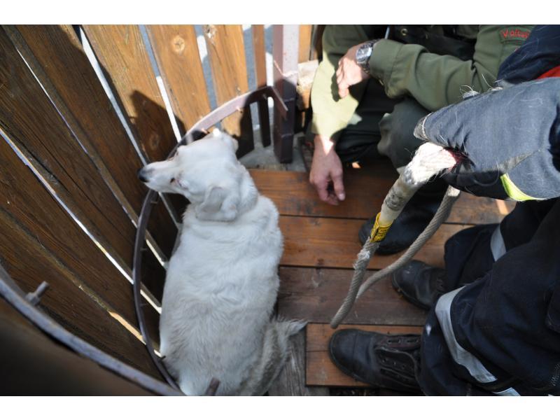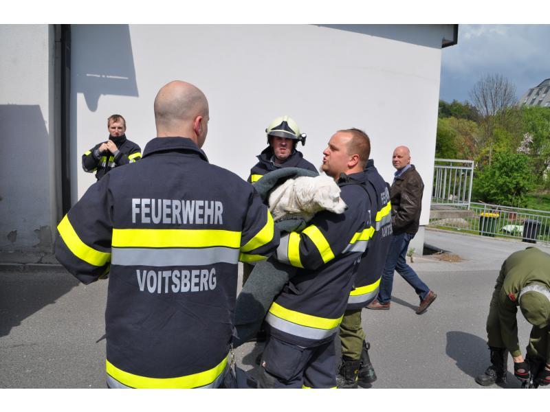 VOITSBERG, am 19.04.2014 Ein Hund fiel aus ungeklärter Ursache wahrscheinlich in den Abendstunden des Karfreitages im Bereich eines Fußweges zum Schlosspark in Voitsberg in den Schlossbach und konnte sich nicht mehr befreien. Fußgänger bemerkten erst nach Mittag des Ostersamstages das herumirrende und auf Hilfe wartende Tier und verständigten über Notruf 122 die FF Voitsberg. Nach Erkundung des Einsatzleiters OBI Münzer wurde der unverletzte Hund im Bach eingefangen, geborgen und in das Tierheim Franziskus nach Rosental überstellt.