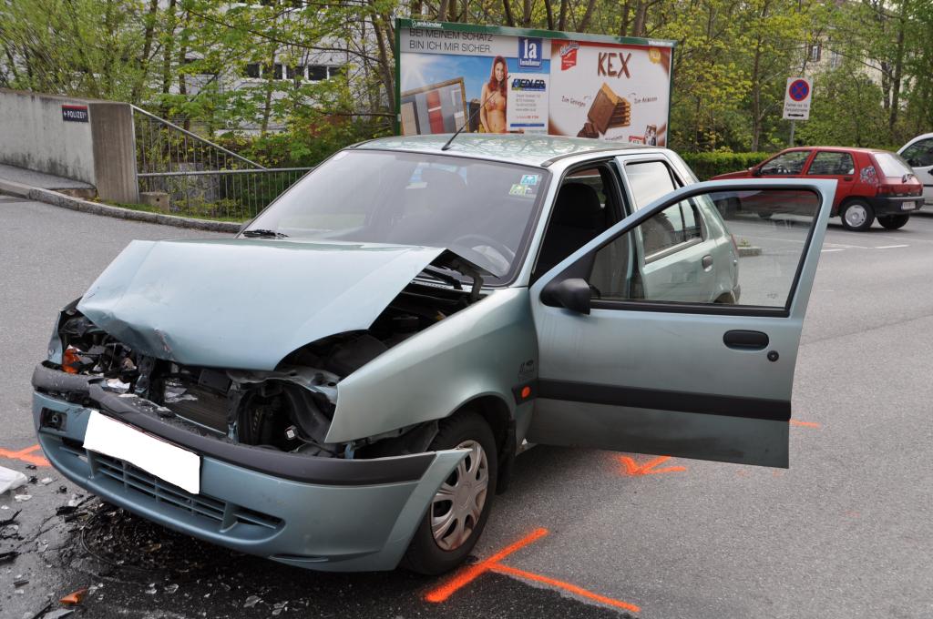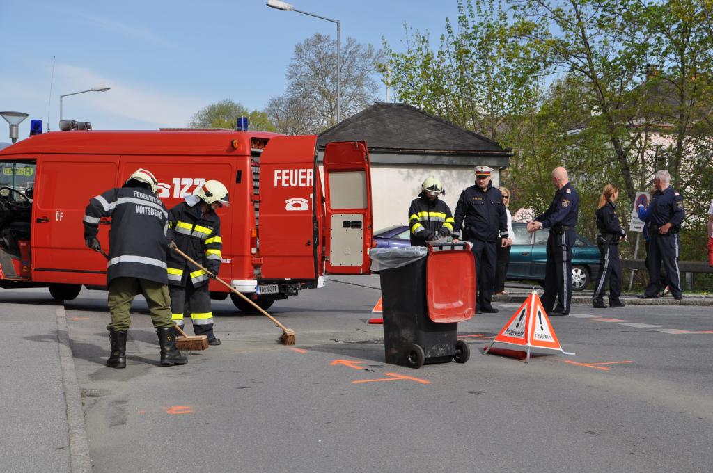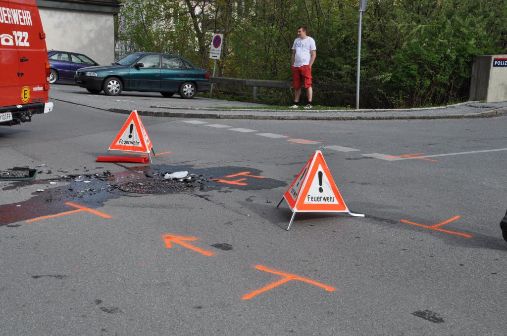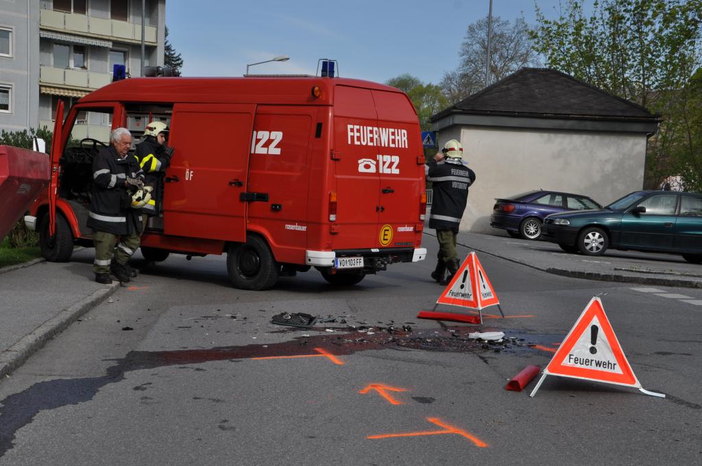VOITSBERG, am 08.04.2014 Nach Mißachtung der Vorrangregel eines Verkehrsteilnehmers kam es auf der Kreuzung Arnsteinstraße – Dr.Hubert Kravcar-Platz zu einem Zusammenstoß zweier PKW, wobei eine unbestimmten Grades verletzte Person mit dem Roten Kreuz ins LKH Voitsberg eingeliefert wurde. Ausgeflossene Betriebsmittel wurden durch die FF Voitsberg mit Bindemittel gebunden und ein beschädigtes Fahrzeug von der Unfallstelle entfernt. Die polizeilichen Erhebungen wurden von der PI Voitsberg durchgeführt. Die Absicherung der Unfallstelle mit Warntafeln erfolgte seitens des städtischen Bauhofes Voitsberg.