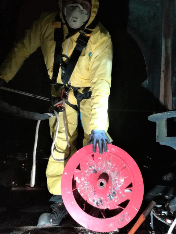 VOITSBERG, am 09.11.2020 Nach einem technischen Ausfall der Sirene am Kirchturm der Michaelskirche in Voitsberg wurde diese von Kameraden der FF Voitsberg abgebaut, reperiert und wieder unter schwierigen Bedingungen montiert.