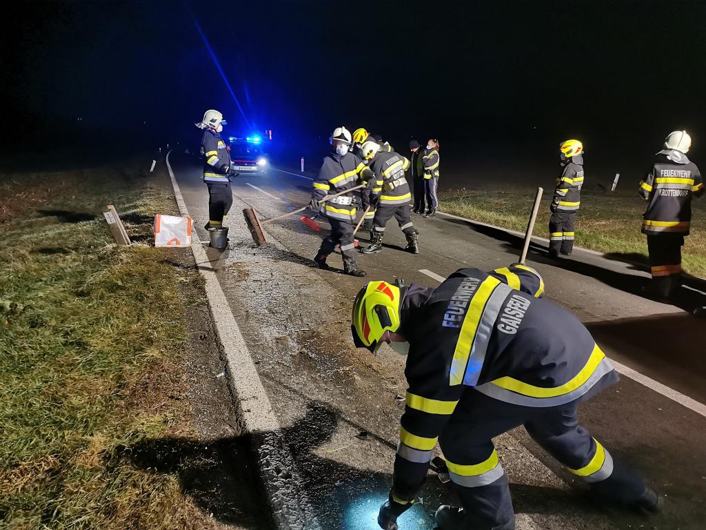 VOITSBERG, am 26.11.2020 Über Anforderung der einsatzleitenden FF Krottendorf wurde die FF Voitsberg mit dem WLF-Kran zu einer Fahrzeugbergung alarmiert, nachdem bei einem stark beschädigten Pkw Betriebsmittel ausflossen.